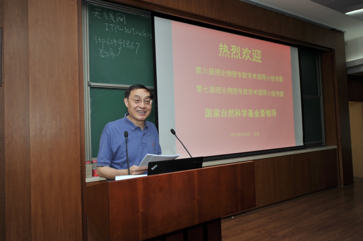 2017年5月8日,国家自然科学基金委理论物理专款第七届学术领导小组换届会议在中国科学院理论物理研究所圆满召开。国家自然科学基金委主任杨卫院士,数理学部主任谢心澄院士、副主任董国轩研究员,物理一处张守著处长、物理二处蒲钔处长、李会红博士参加了此次会议。参加会议的学术领导小组成员和顾问有:陈润生院士、李树深院士、罗民兴院士、欧阳钟灿院士、孙昌璞院士、陶瑞宝院士、夏建白院士、向涛院士、赵光达院士、蔡荣根研究员、黄涛研究员、刘杰研究员、卢建新教授、马余刚研究员、王炜教授、王建国研究员、许甫荣教授、易俗研究员、尤力教授、赵强研究员、邹冰松研究员。