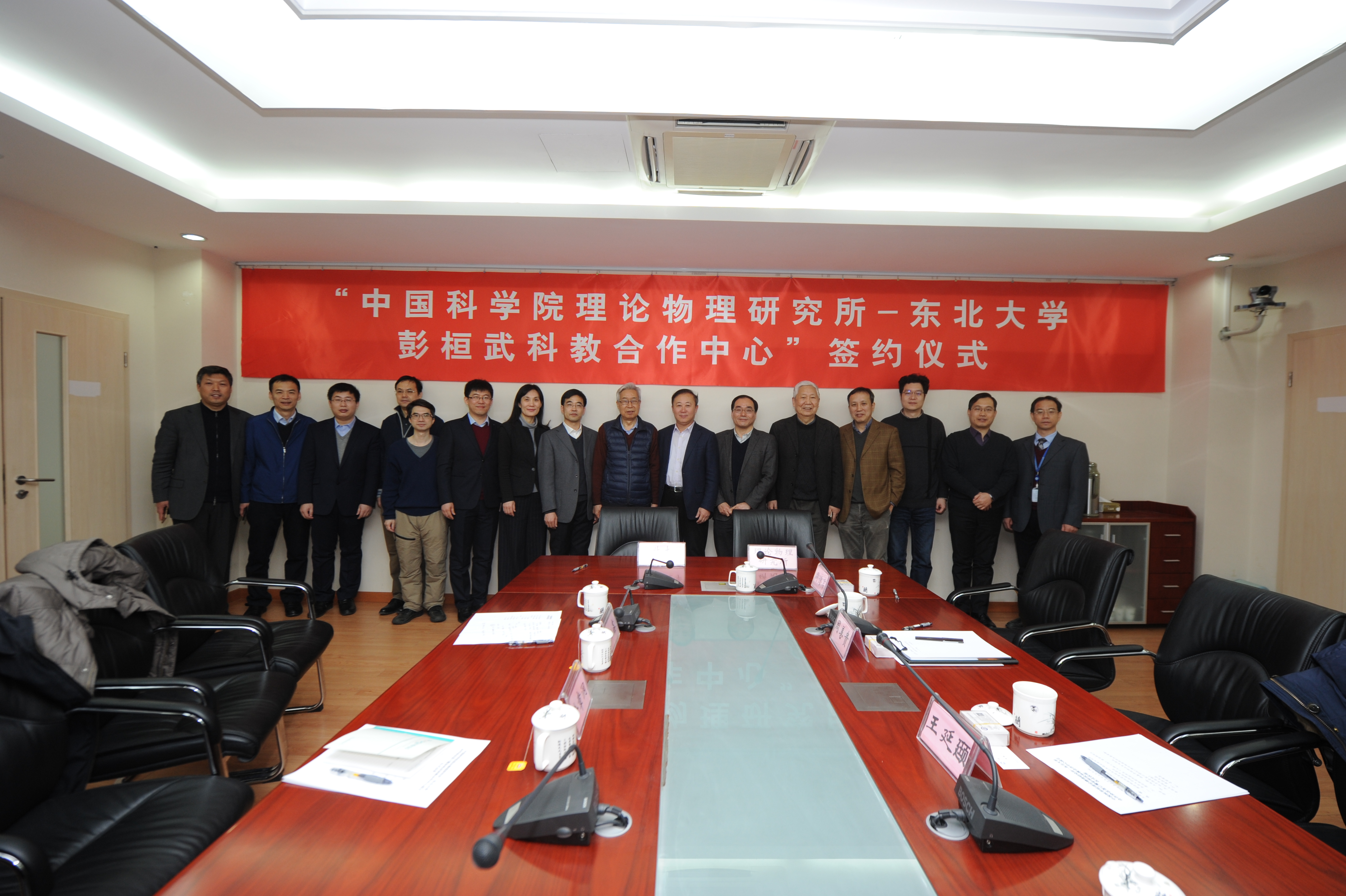 理论物理所研究室,院重点实验室,彭桓武理论物理创新研究中心,综合处,科研处,人事教育处,东北大学物理系等相关负责人参加了签约仪式。