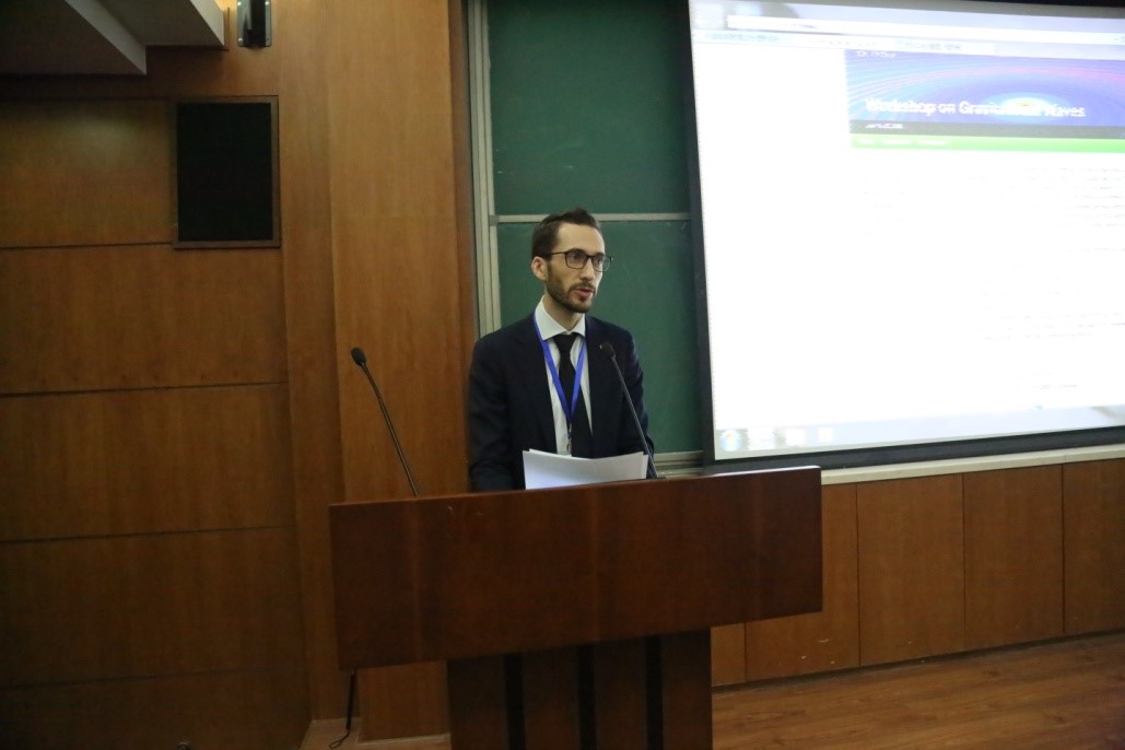 报告开始前,David Bennett参赞发表了热情洋溢的演说,首先他代表澳大利亚驻华使馆热烈欢迎中澳两国的科学家参加此次合作研讨会。他在演说中谈到,1916爱因斯坦的广义相对论预言了引力波的存在,100年后,LIGO和 Virgo第一次探测到了引力波,当时我听到这个消息时是如此地兴奋和激动;有些人有时可能会质疑做基础研究的价值,但前沿基础科学研究是非常重要的,是互利共赢的价值观之一。在1970年代的澳大利亚,奥沙利文和他的天文研究团队在尝试探测来自遥远黑洞的无线电信号地研究中,开发了一种专门进行快速傅立叶变换的芯片,虽然最后并没有发现任何黑洞,但这种快速傅立叶变换最终被应用于无线局域网技术。因此,前沿科学研究总是以我们无法预见的方式在未来造福于我们。今天,中国和澳大利亚在天文学方面的合作研究日趋深入,中国的全球最大射电望远镜FAST探测和研究正在进行中,中国和澳大利亚都是全球平方公里阵列项目的领导者,双方在物理学、天体物理学、天文学和引力波探测方面的合作,将使我们受益匪浅,并拓展人类知识的疆界。听说澳大利亚和中国在引力波探测研究之间的联系越来越紧密,特别是与中科院理论物理研究所之间的合作。澳大利亚和中国政府积极支持科学合作项目,如联合科学研究基金项目,为联合研究中心和顶尖机构之间的青年科学家交流提供资金,并召开专题研究座谈会。澳大利亚-中国的科学合作是双边关系的重要组成部分。去年,李克强总理和马尔科姆特恩布尔总理宣布了新的创新对话,我们期待着在明年继续建立更高水平的对话,期待着未来听到更多澳大利亚-中国在引力波研究方面的合作成就!