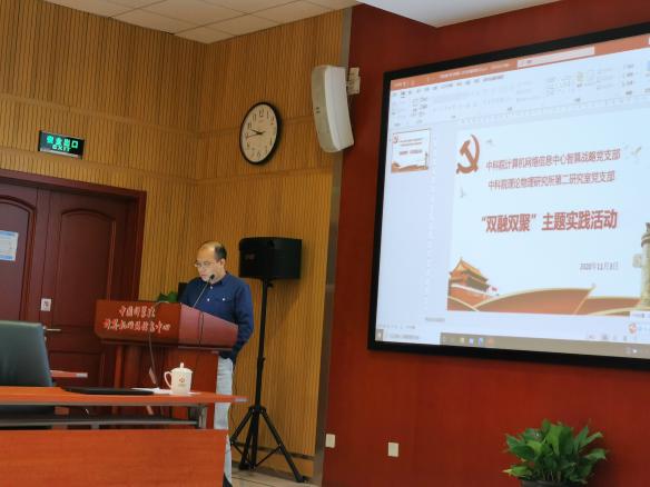 2020年11月3日,在计算机网络信息中心会议室,计算机网络信息中心智算战略党支部与理论物理研究所第二研究室党支部联合举办了“双融双聚”主题实践活动。理论物理所党委书记冯稷、副所长兼纪委书记王延颋、计算机网络信息中心党委副书记兼纪委书记蔺占兵出席活动,两个支部60余名党员和入党积极分子参加活动,主题实践活动由智算战略党支部书记金钟主持。