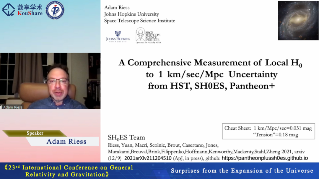 Adam Riess教授首先介绍了去年年底由HST、SH0ES和Pantheon+等三个团队联合给出的对哈勃常数局域测量到目前为止最精确的结果,并以此引出哈勃常数危机。
