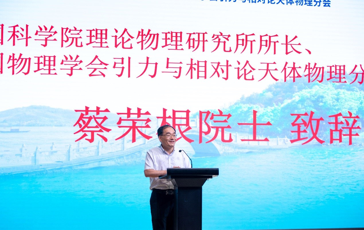 蔡荣根首先对组织这次年会的工作人员的辛勤付出表示感谢,在全国疫情还不稳定时组织这次年会非常不容易,克服了许多困难会议才如期召开。这次年会与往届年会不同:一是由于疫情原因,年会采取线上线下结合的方式举办;二是本次年会与第23届国际广义相对论与引力会议一起召开,会议持续一周,注册人员达到一千三百余人。蔡荣根谈到,从事基础研究工作,不仅要探索前沿科学知识、拓宽知识边界、发现自然规律,也要关注国家需求中的基础科学问题,促进国家经济社会和相关产业的发展。
