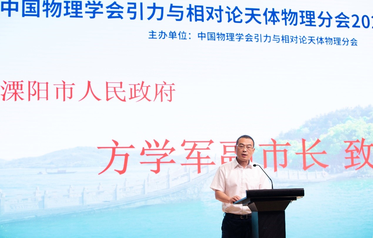 中国物理学会引力与相对论天体物理分会主任、中国科学院理论物理研究所所长蔡荣根院士,中国科学院物理研究所副所长胡江平研究员,溧阳市人民政府副市长方学军,溧阳高新区管委会副主任潘益明,以及溧阳市高新区管委会科技局局长陈青出席了大会开幕式。会议开幕式由郭宗宽研究员主持,蔡荣根和方学军在开幕式上分别致辞。