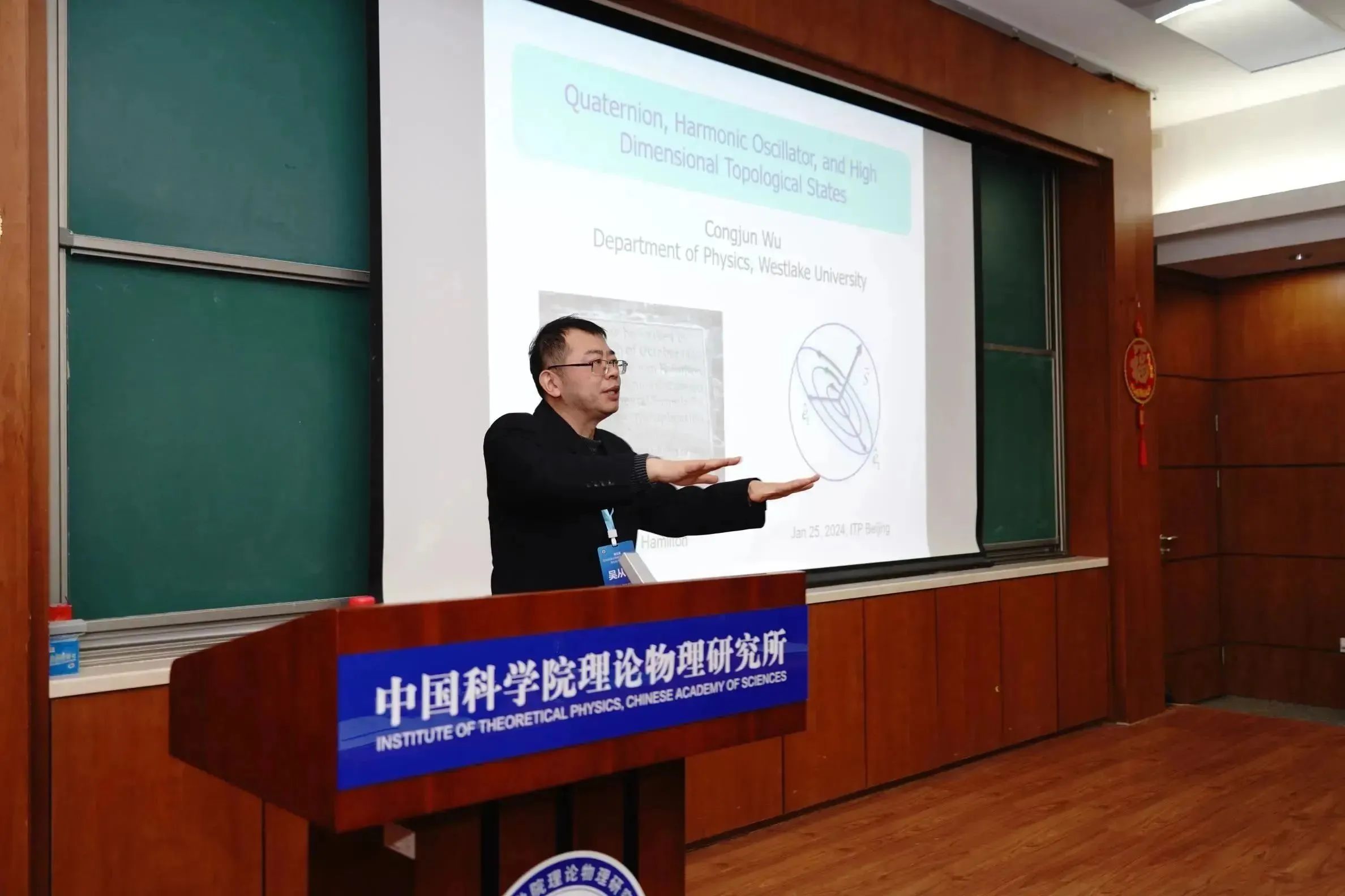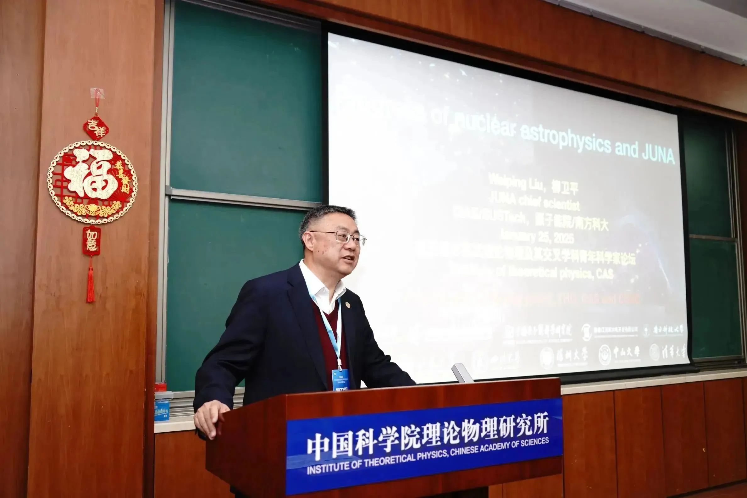 结合此次青年科学家论坛,还邀请了柳卫平研究员和吴从军教授分别做了题为“核天体物理发展和JUNA锦屏深地核天体物理进展”和“Quaternion and high-dimensional topological states” 的彭桓武前沿科学论坛特邀报告,向参会的专家学者详细介绍了最新的实验进展和理论工作。在接下来的青年科学家论坛上,十位优秀青年学者介绍了各自的研究领域及取得的最新进展。与会人员就报告内容进行了热烈的探讨与深入的交流。