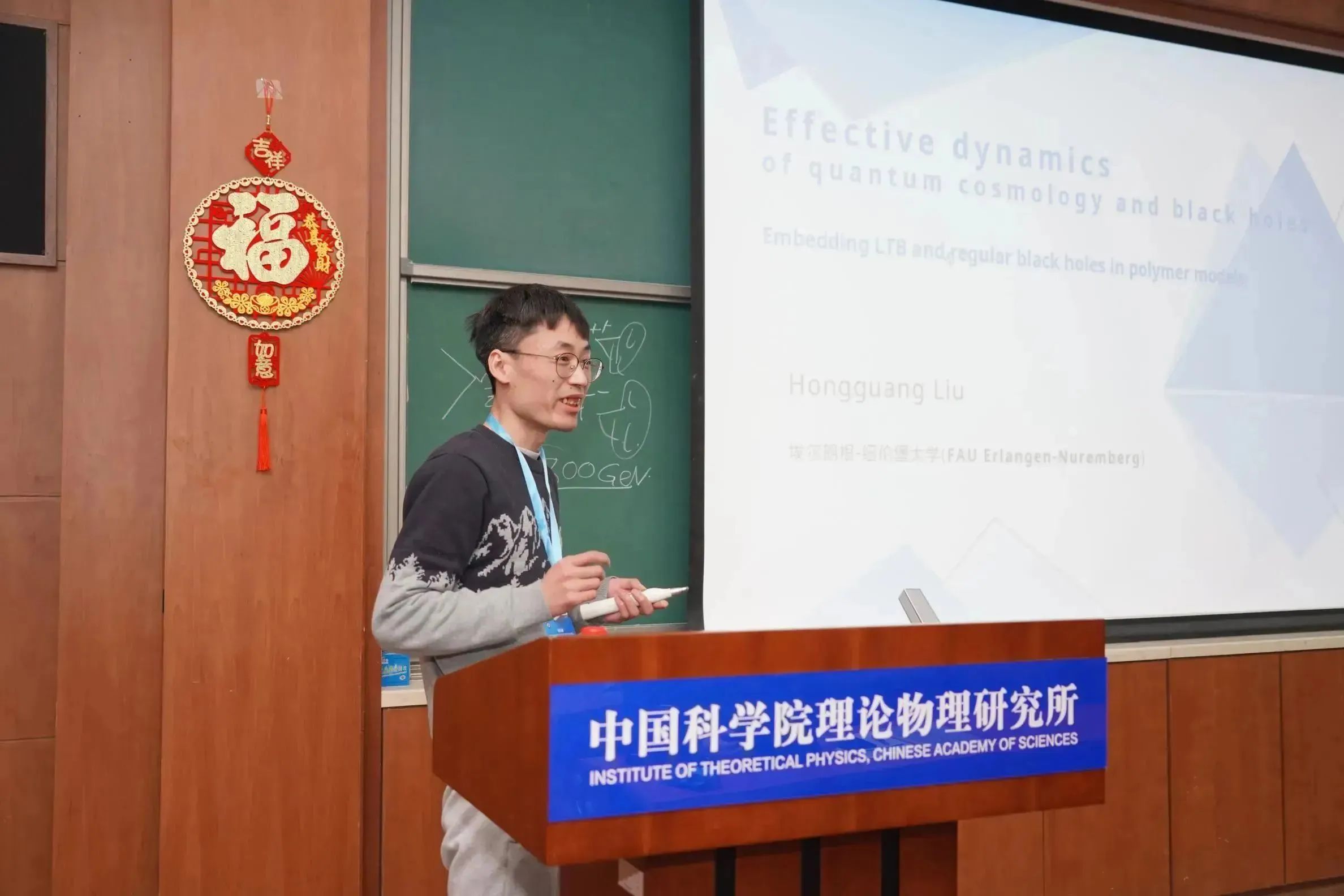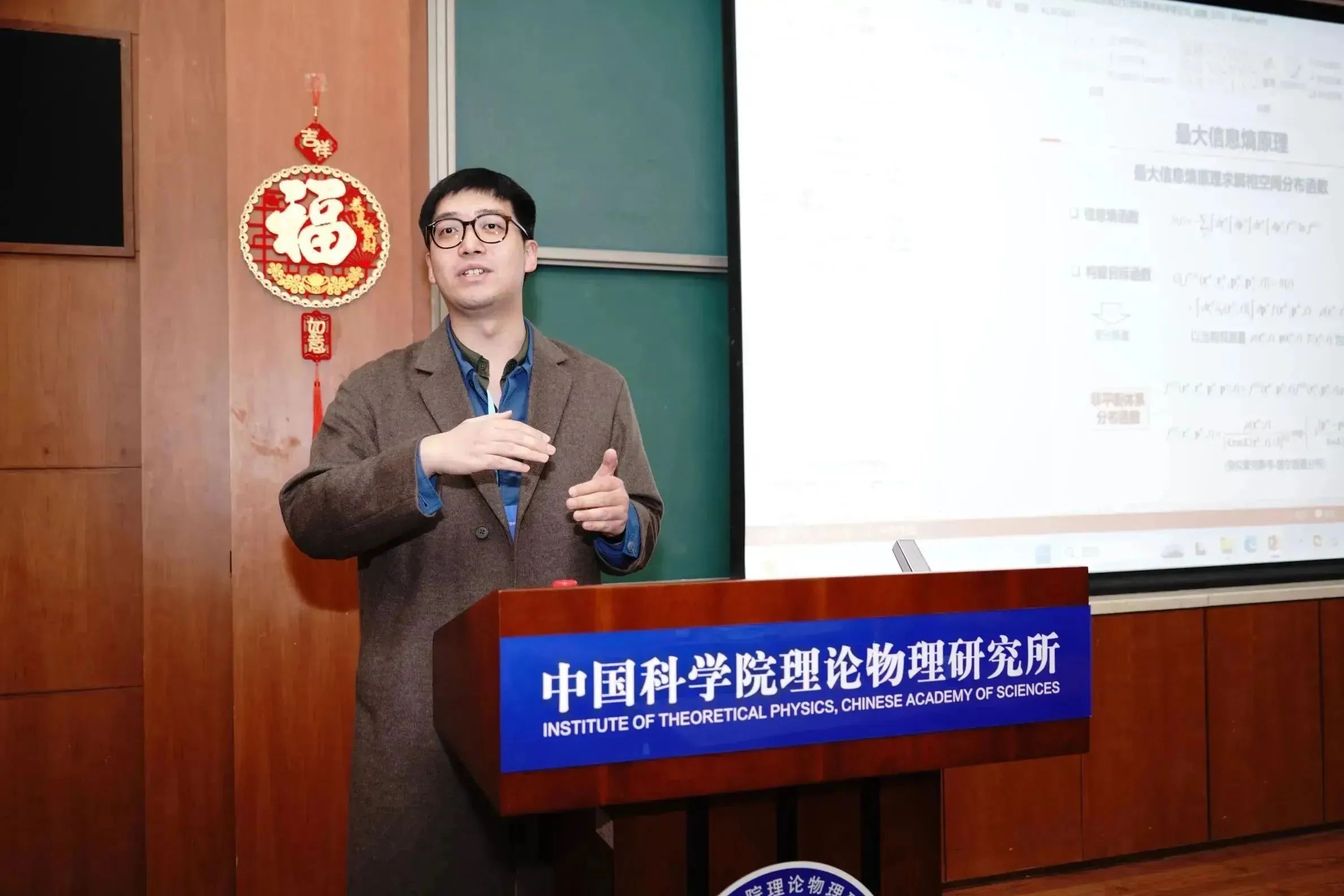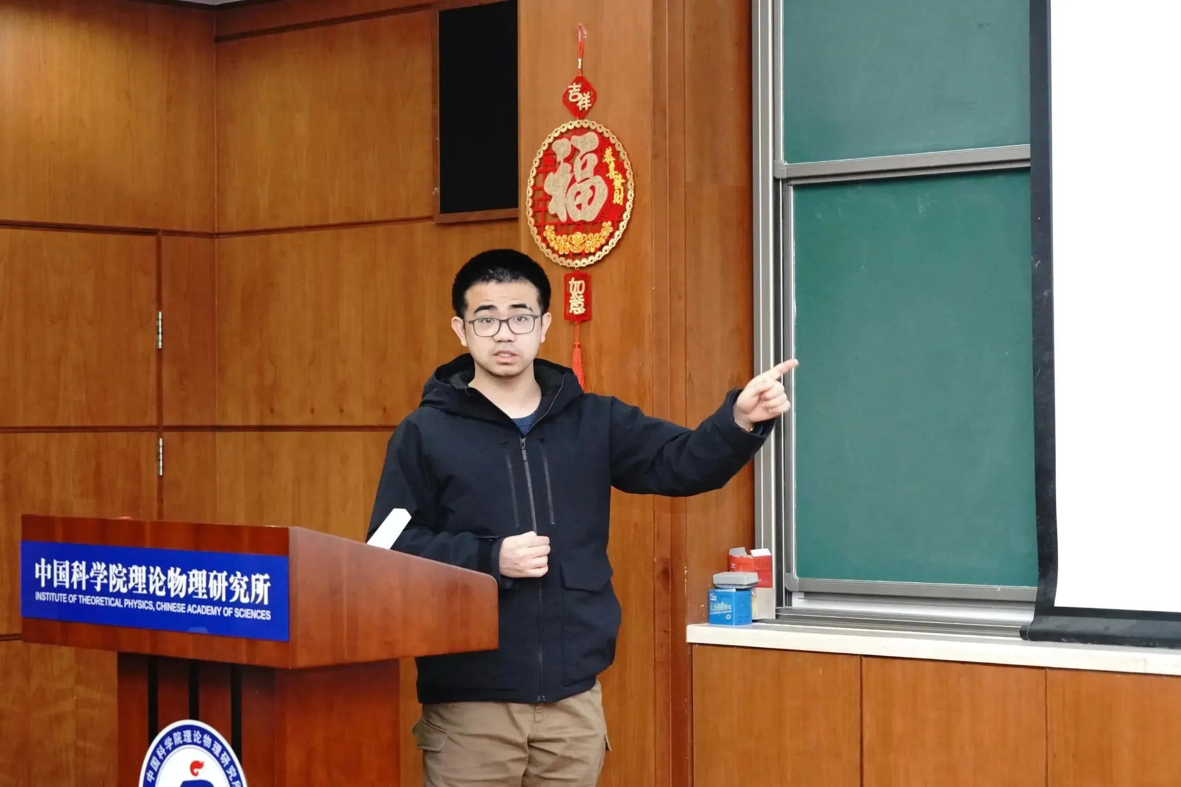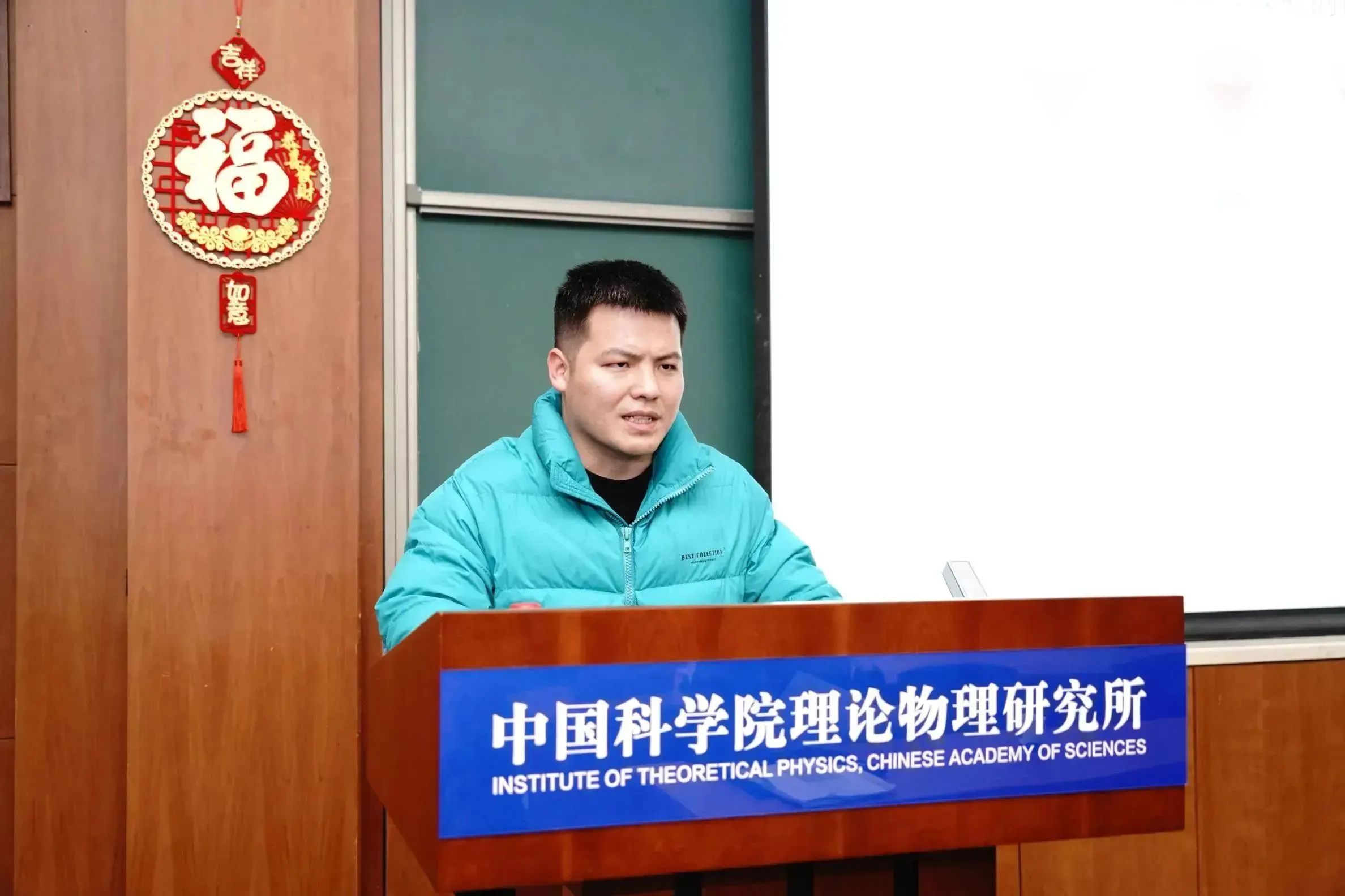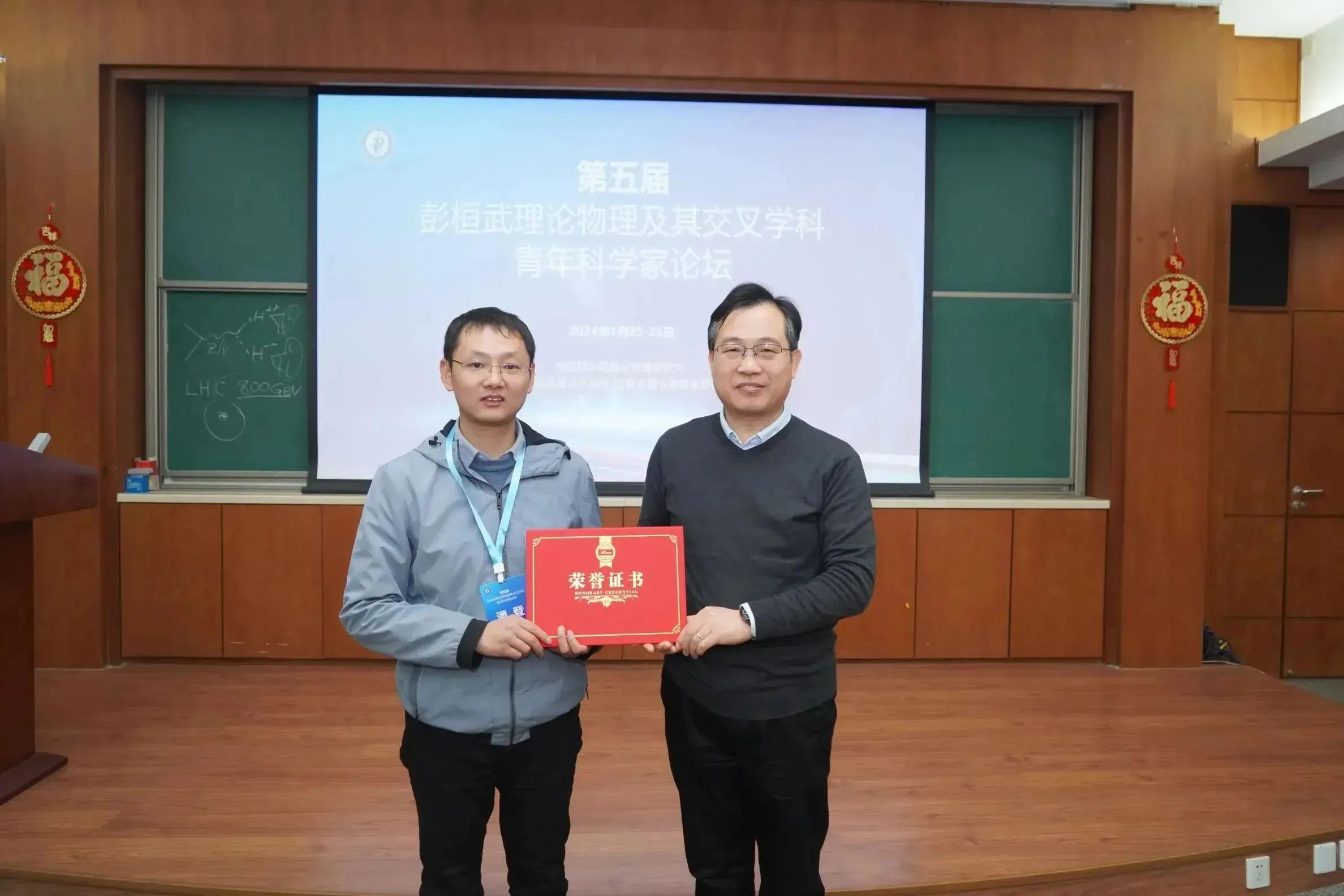 为鼓励和表彰优秀的报告人,青年科学家论坛设立了“最佳报告奖”。经在场全体与会人员投票,来自理论物理所的潘登助理研究员获得了“最佳报告奖”。周善贵副所长为获奖者颁发证书。