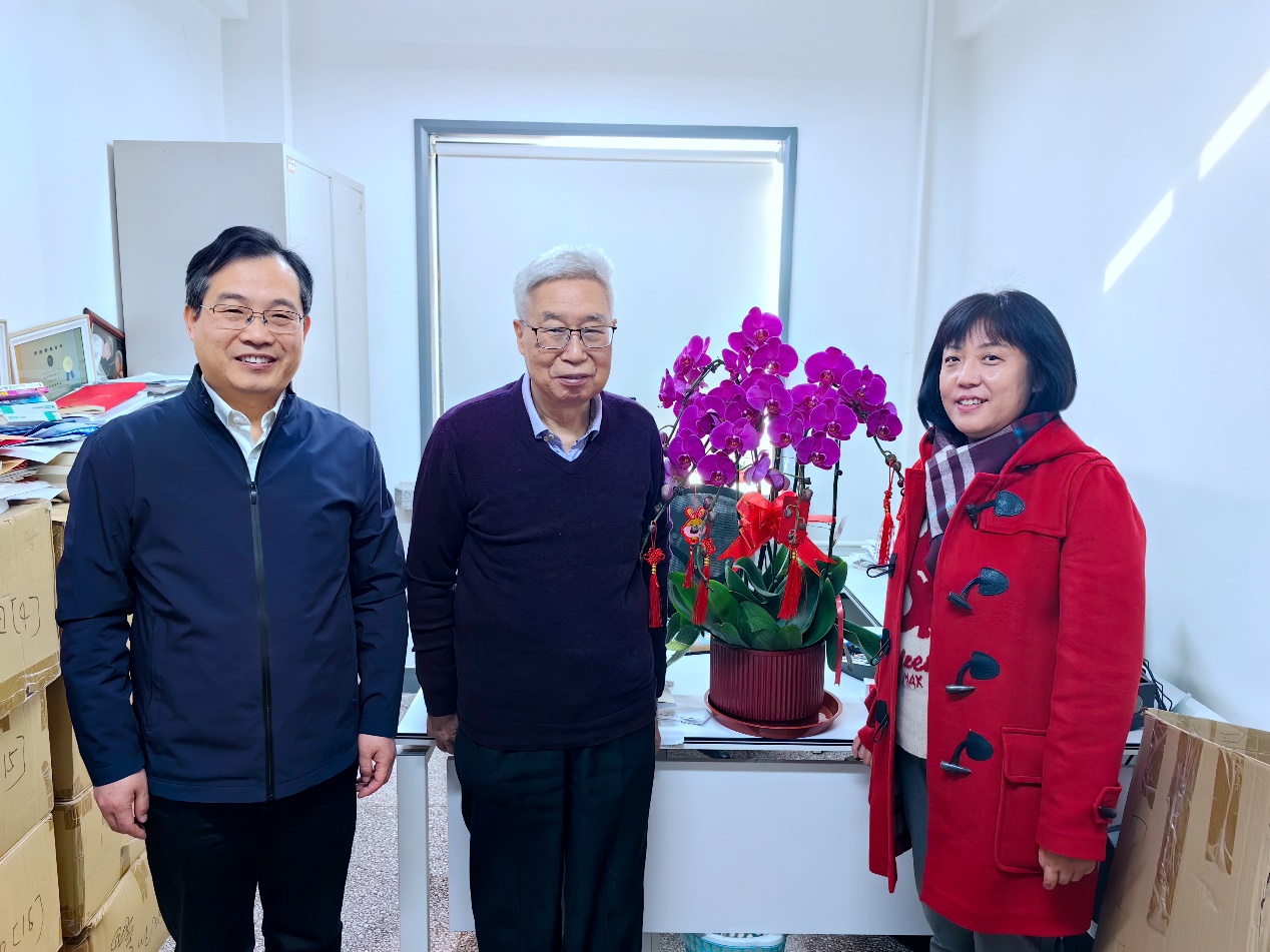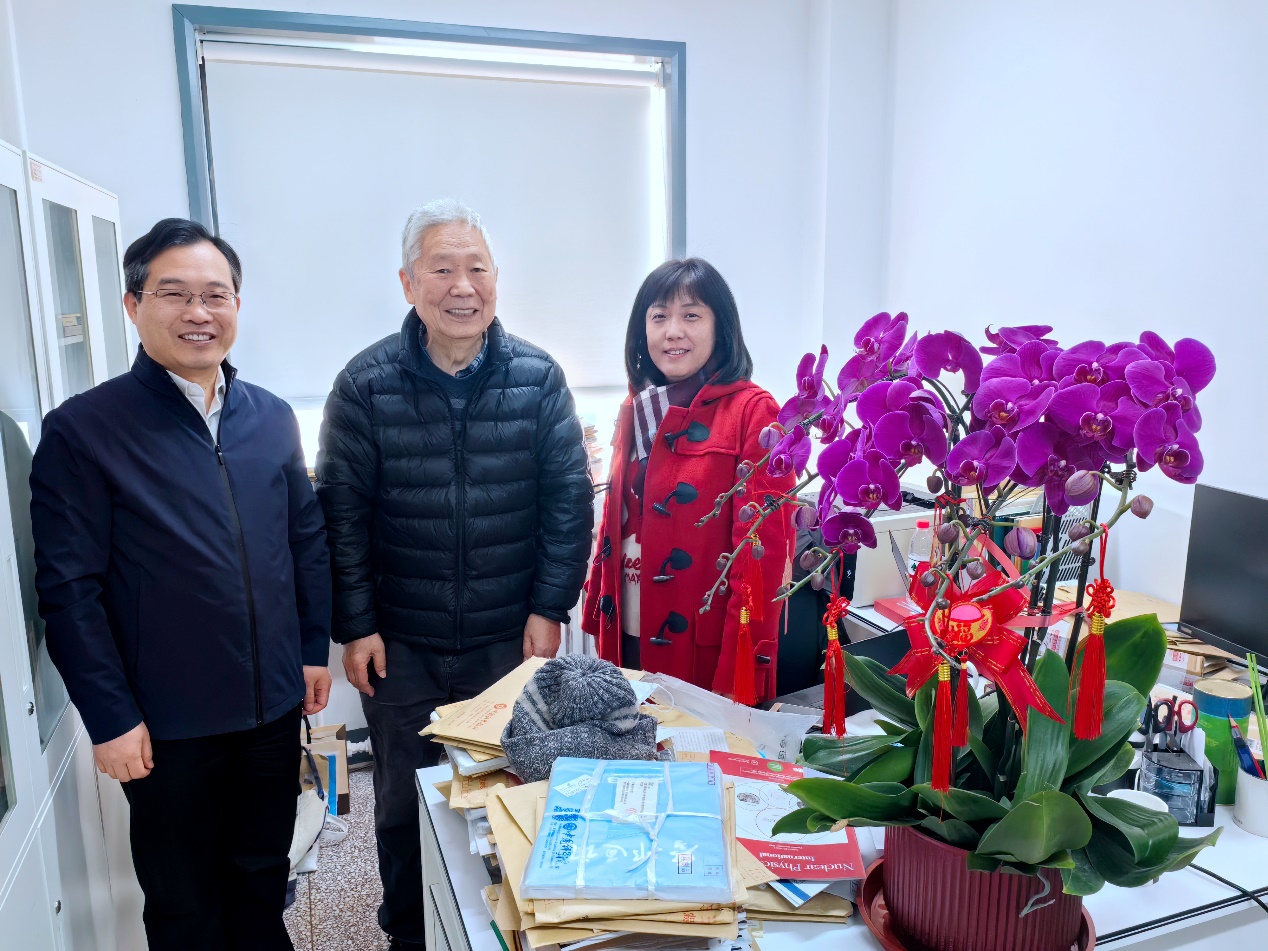 2024年是中华人民共和国成立75周年,是实施“十四五”规划的关键一年,为贯彻落实中共中央组织部、院党组有关通知精神,使广大党员、干部、职工深切感受到党中央的关怀和温暖,进一步激励广大党员、干部、职工坚定信心、开拓奋进,埋头苦干、勇毅前行,理论物理所所长周善贵,党委书记、副所长樊志军在春节前夕走访慰问了院士专家、老党员、离退休老干部代表,向他们表示诚挚的问候和新春的祝福,转达了上级组织的关怀。详细询问了他们的身体和生活状况,感谢他们为研究所发展做出的贡献,希望他们保重身体,一如既往地支持研究所各项工作,积极建言献策,为研究所抢占科技制高点,实现高水平科技自立自强贡献力量。