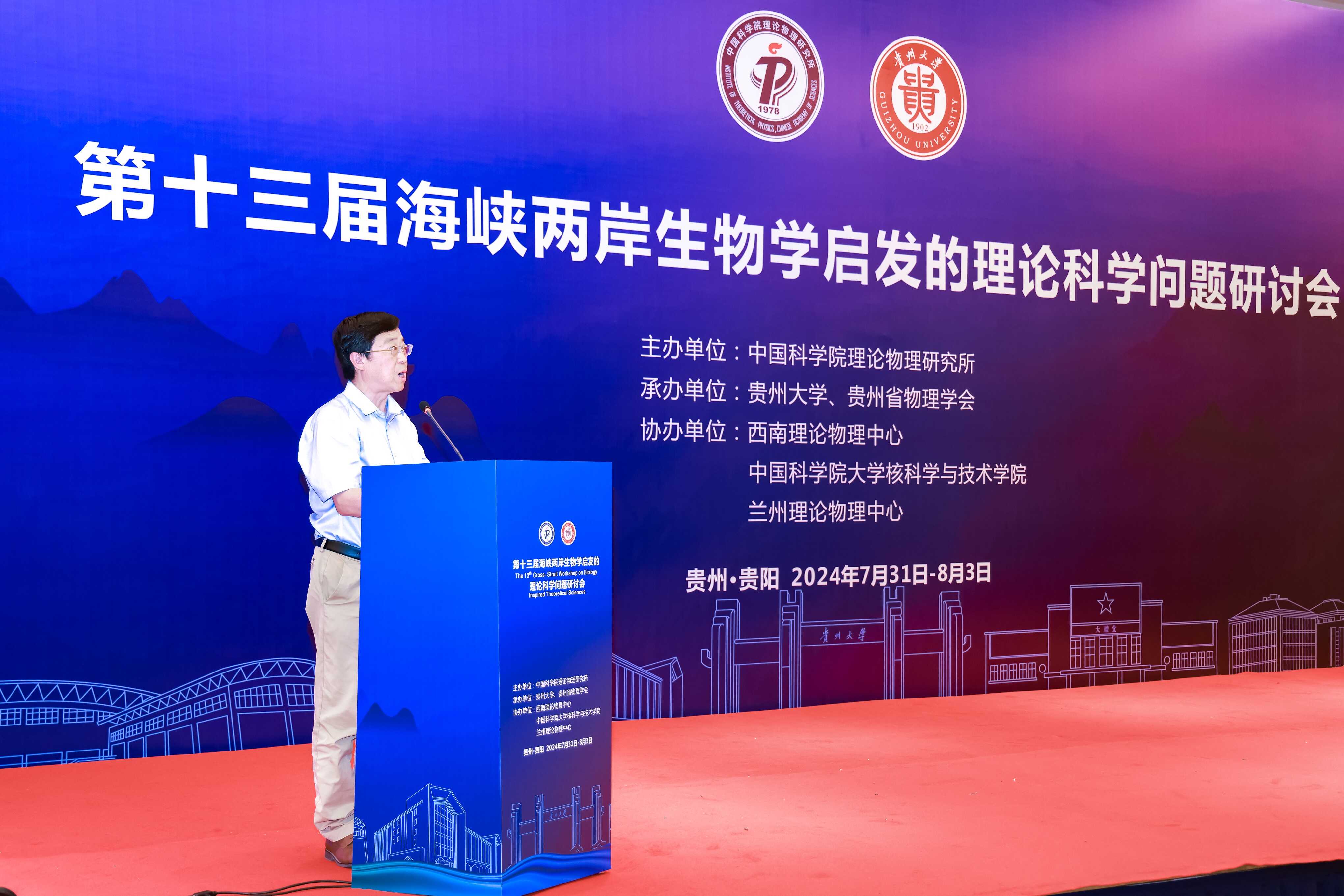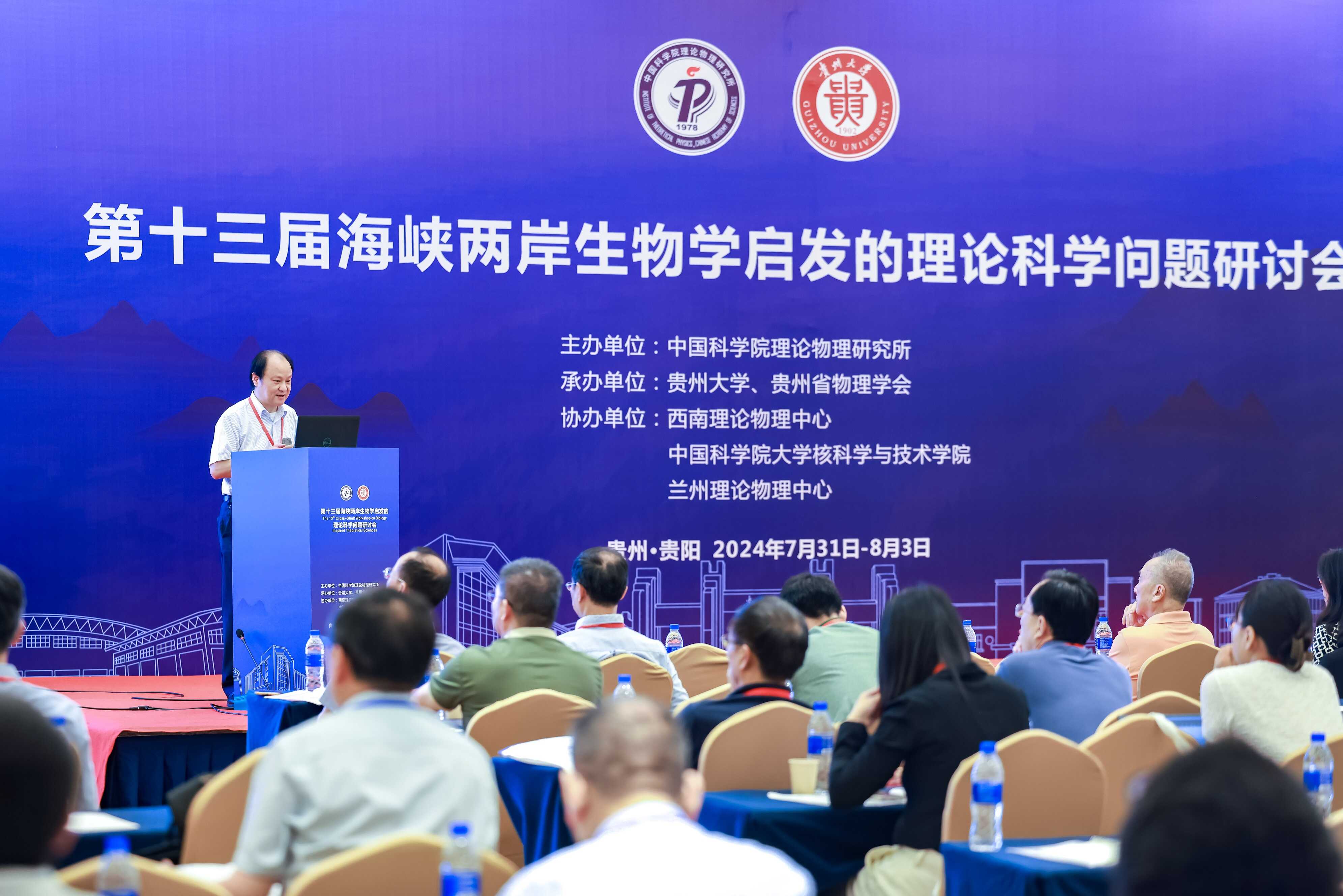 2024年7月31日-8月3日,由中国科学院理论物理研究所主办,贵州大学、贵州省物理学会承办,西南理论物理中心、兰州理论物理中心、中国科学院大学核科学与技术学院协办的第十三届海峡两岸生物学启发的理论科学问题研讨会在贵阳召开。来自海峡两岸和海外共94所高校和科研单位的近220名代表齐聚一堂,就生物物理及生物信息学,软物质体系动力学、结构与相变,理论基础与实验方法,复杂系统、复杂网络、微流控器件等领域的研究成果、最新进展进行深入交流研讨。