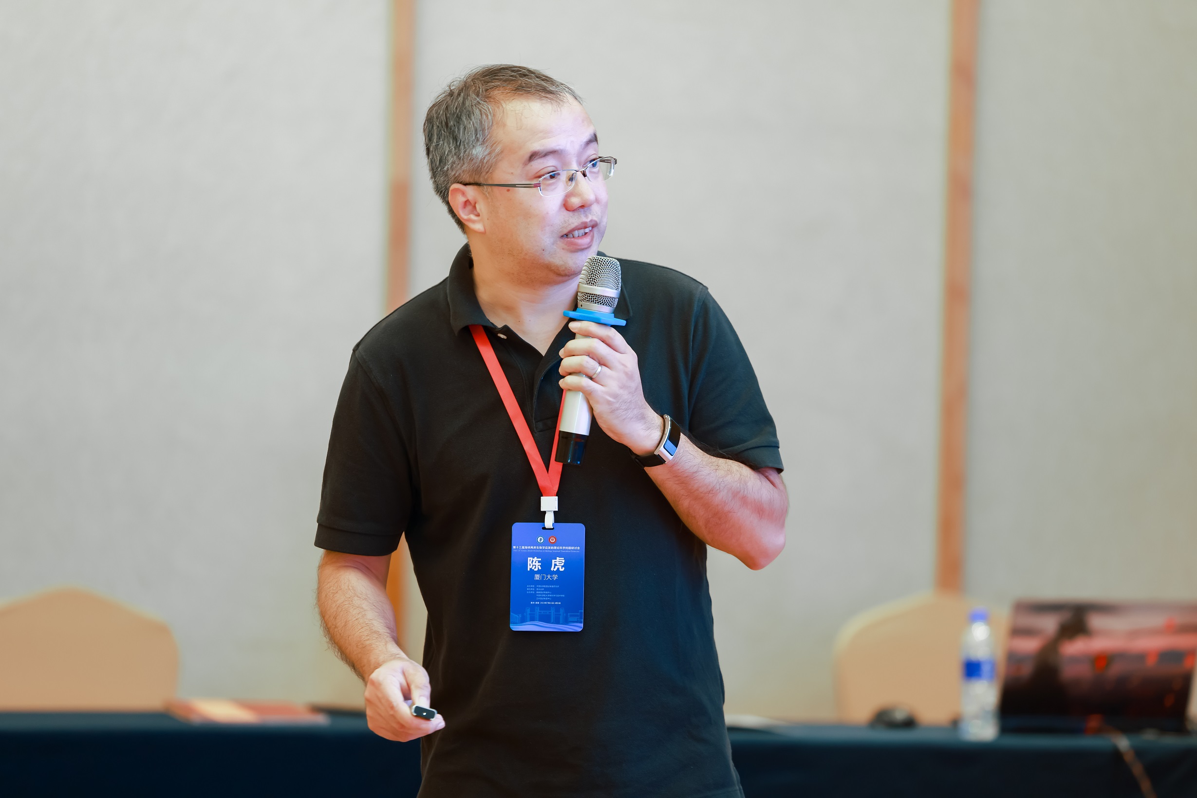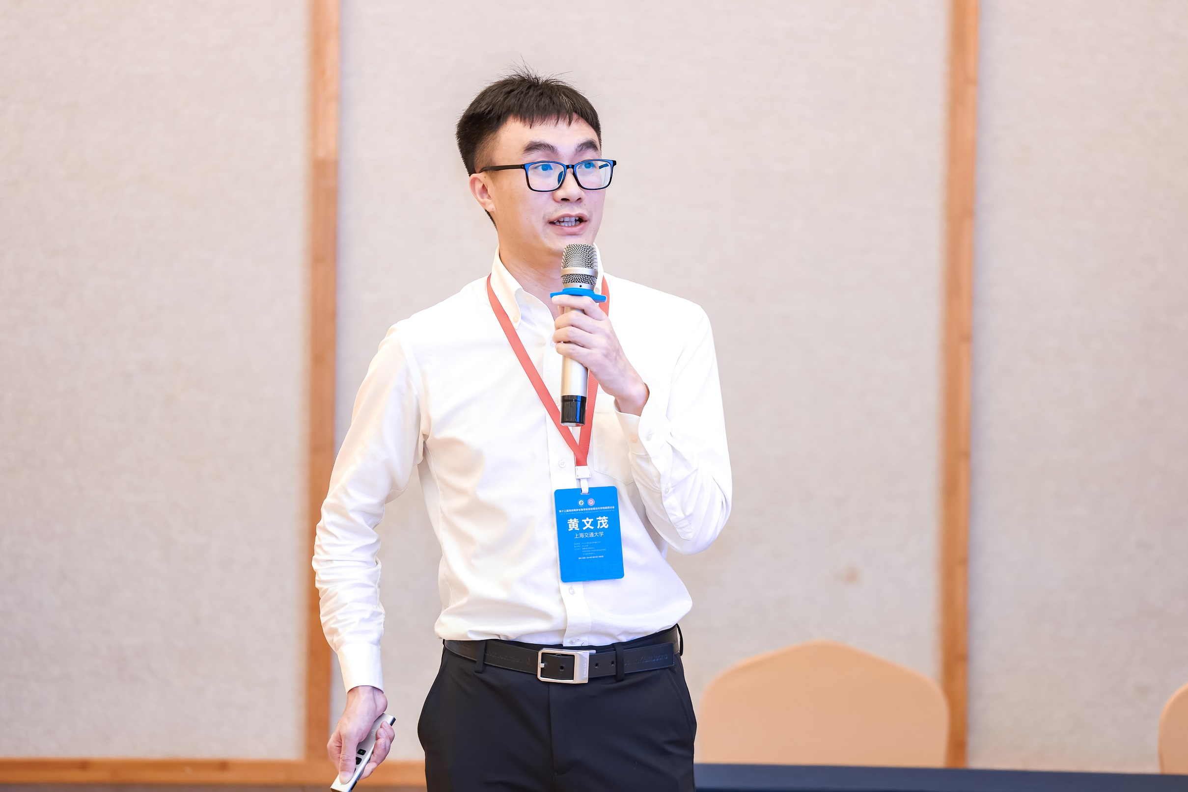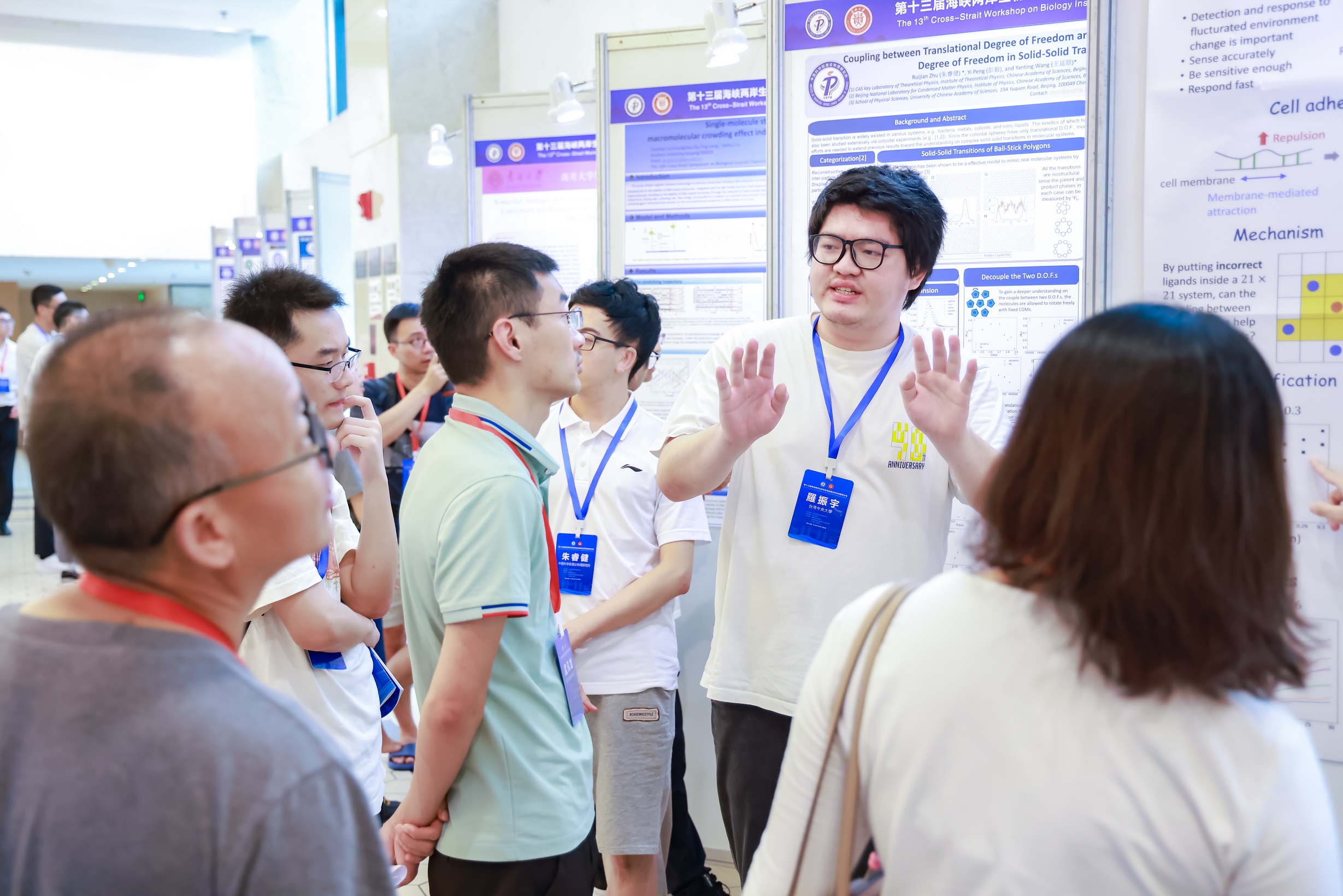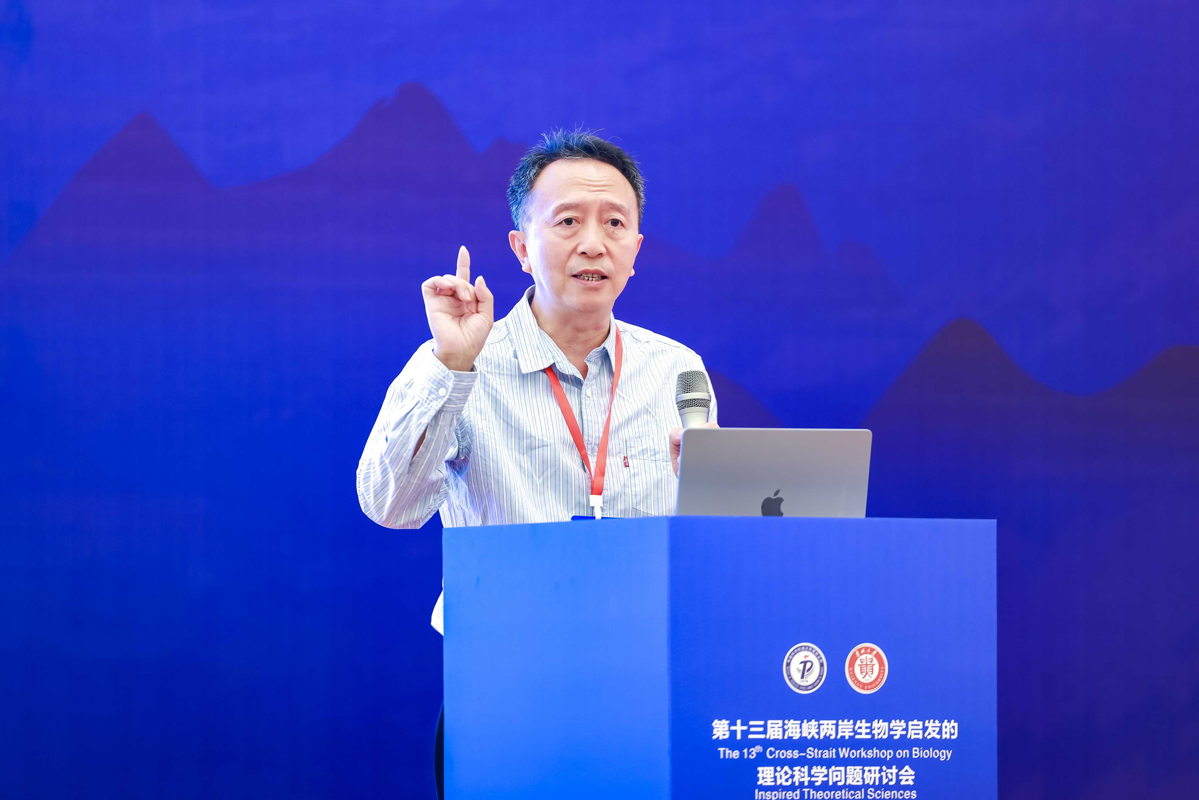 大会报告阶段,来自海峡两岸及海外的10位知名学者分别做了报告,其中台湾“中央大学”李弘谦教授以“对细胞发育、分化、倒带、逆龄的一些想法”为题,介绍了系统生物学的最新研究进展;南京大学王炜教授、新加坡国立大学严洁教授分别做了题为“从蛋白质分子到生物群体的动力学:与生物学相关的几个理论研究”“Unveiling Mechanosensing Mechanisms of Proteins through AI-Based Structural Prediction and Single-Molecule Manipulation”的报告,分别指出蛋白质结构预测方向及基于AI、单分子技术预测蛋白质结构的新方法;武汉大学谭志杰教授全面阐释了“基于广义物理原理的RNA三维结构预测”。大会报告人还有台湾“中央大学”黎璧賢教授、台湾“中央研究院”周家复教授、“中兴大学”周三和教授、“成功大学”张南山教授、美国加州大学尔湾分校喻进教授和复旦大学谭砚文教授。