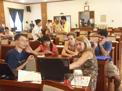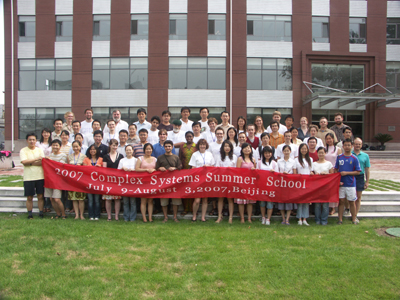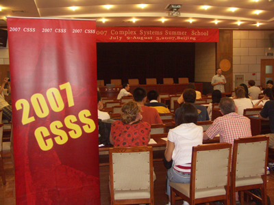 暑期学校由Santa Fe研究所Dave Feldman教授和中国科学院理论物理研究所陈晓松研究员担任校长,邀请了国内外各领域十多位知名学者,对来自世界各地的49名学员进行了为期4周的半封闭式授课。课程内容涵盖了数学、物理、生物、计算机、社会科学及考古学等众多领域。学员中绝大多数为在读研究生,但也不乏刚刚毕业的本科生,以及已经从事教学科研工作多年的研究人员。授课方式以专题讲座为主,老师们从基础知识、研究方法到研究实例对各自领域的工作做了全面的介绍,对学生以后从事复杂系统方面的研究工作提供了背景知识和有利的指导。除了专题讲座之外,暑期学校更注重学生、老师之间的相互交流和讨论,在这四个星期里,学员们在学习基本课目的同时还需组成研究小组,并有明确的研究项目,暑期学校结束时要获得初步的结果。为此,学员们在课后进行了广泛热烈的交流讨论,最终结成了9个小组。各小组在老师们的指导下,通过灵活多样的研究形式(如,计算机模拟、数据统计分析、问卷调查、现场受试等)及紧张辛勤的工作,均于暑期学校结束前获得了初步研究成果,在结业晚宴前进行了汇报展览。尤其值得一提的是,其中不少项目的内容与学员的专业背景几乎无关,极好地体现了此次暑期学校"为兴趣而学"的宗旨,同时也激励了学员们进一步开展跨学科研究的兴趣和信心。除了老师们的讲座之外,暑期学校还组织了一次专题报告,由几位中国学员向国外学生介绍中国的高考及清华大学、西安交通大学的情况,这次活动受到了学员们的热烈欢迎,宣传了我国的教育系统,让外国学员对中国的教育有了一个基本的了解。