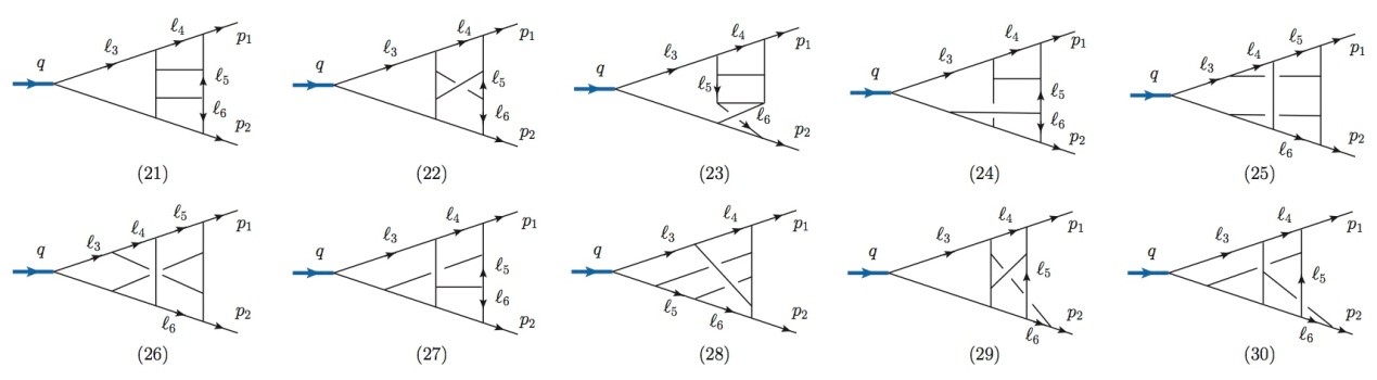 图:最终贡献于非平面结果的10个四圈费曼积分拓扑 |