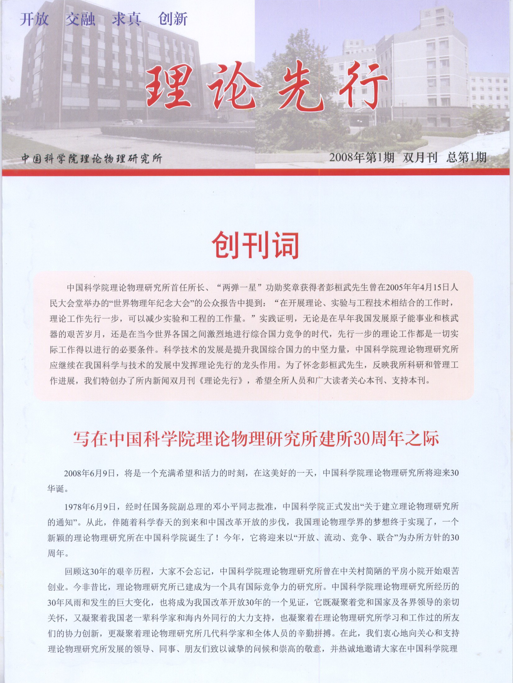 2008年2月28日,是我们敬爱的彭桓武先生离开我们整整一年的日子,为了秉承彭先生热爱祖国、无私奉献、淡泊名利的科学精神,在彭先生去世周年时,我所出版《理论先行》所刊,以表达对老所长的怀念之情。在2月28日这一天,我所组织了全体管理、支撑部门工作人员到香山彭先生骨灰遗撒处纪念活动。
