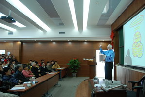参加霍尼韦尔-诺贝尔全球校园行的国际著名物理学家、1979年诺贝尔物理奖得主、美国科学院院士,美国哈佛大学和波士顿大学的Shelly Glashow教授,于2008年4月11日访问了中国科学院理论物理研究所。这是他继2005年11月6日之后,再次访问理论物理所。理论物理所所长吴岳良院士,欧阳钟灿院士、邝宇平院士等参与了会见并与之亲切交谈,双方就基础科学特别是理论物理及其交叉学科的发展和未来交换了意见。下午三点,Shelly Glashow教授作了题为“和小矩阵度过的一生(My Life with Small Matrices and at the Pool Table)”的学术报告,报告中Glashow从他对台球的偏好讲起,谈到台球中的物理,以及他最近计算的和台球碰撞相关的很多有趣问题;之后他讲起了他所历经的包括他获诺奖的标准模型在内的粒子物理理论的发展过程,正如他的报告题目所概括的“和小矩阵度过的一生”;最后他引用他的挚友Sidney Coleman对他的调侃:“Shelly除了会做矩阵的对角化之外并没有更高的数学技能,但是,他知道哪些矩阵应该去对角化”,充分体现了大家的谦虚和幽默。