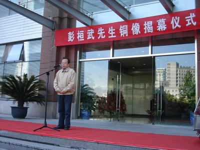 10月12日上午,我国著名理论物理学家、“两弹一星”元勋彭桓武先生铜像揭幕仪式在中科院理论物理所举行。两弹一星功勋奖获得者、中国科协名誉主席周光召院士,何泽慧院士,全国政协科教文委主任、原科技部部长徐冠华院士,两弹一星功勋奖章获得者于敏院士一起为铜像揭幕。以彭桓武先生名字命名的“彭桓武理论物理学奖学金”也同时设立。中国工程物理研究院原院长胡思德院士等出席了揭幕仪式。著名物理学家、诺贝尔物理奖获得者李政道先生专门为彭先生铜像揭幕送来花篮。