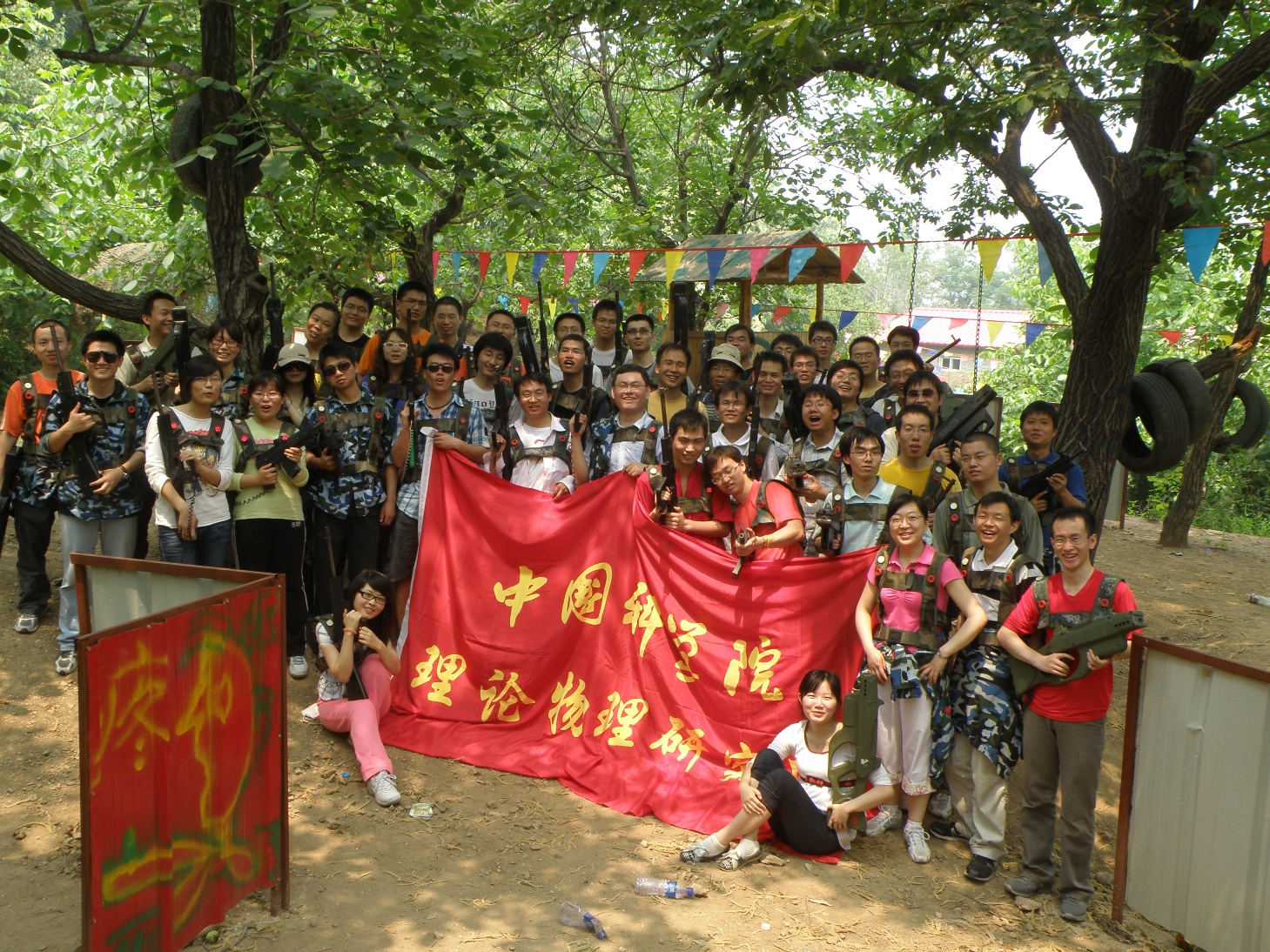 六月的盛夏,空气里散发着淡淡的离别气息,我们即将送走一批莘莘学子,几年的奋斗带给他们毕业的收获与欢乐。在理论物理所2010届毕业生最后的学习时光里,为营造良好的毕业氛围,展示毕业生的风采,在所党委、所领导的大力支持和帮助下,由理论物理所团学会、研究生党支部联合推出的欢送毕业生活动——户外模拟军事拓展,于2010年6月25日在怀柔区京螺山庄成功举行。