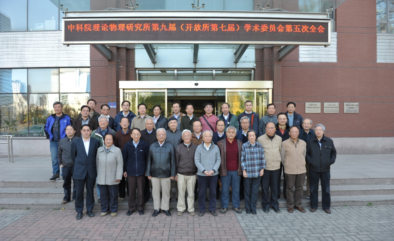2011年11月12日,中国科学院理论物理研究所第九届(开放所第七届)学术委员会第五次会议在理论物理研究所召开。出席会议的所外委员有(按姓氏拼音排序):陈建生、冯世平、龚昌德、郝柏林、李家明、陆埮、乔从丰、陶瑞宝、王青、王炜、武向平、夏建白、杨炳麟、张焕乔、张新民、张宗烨、赵光达、赵维勤、朱邦芬、邹冰松;所内委员有:蔡荣根、陈晓松、陈裕启、戴元本、杜孟利、何祚庥、李淼、马建平、欧阳钟灿、苏肇冰、孙昌璞、吴岳良、向涛、周善贵、朱传界;此外,中科院基础局数理处王永祥处长也出席了此次会议。