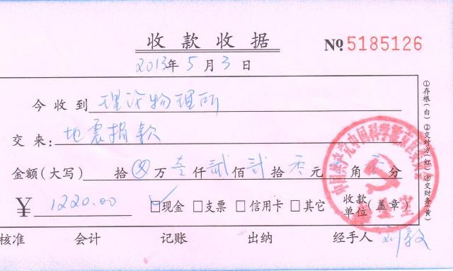 4月20日上午四川省芦山地区发生7.0级强烈地震,造成重大人员伤亡和严重财产损失。按照院党组、京区单位统一安排,理论物理所积极配合抗震救灾工作,组织了支援灾区自愿捐款活动。