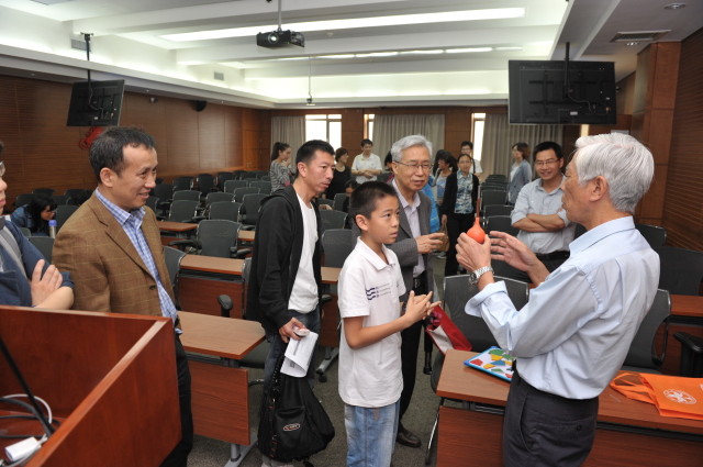 报告结束后很多听众都结合自己的理解和陆坤权研究员进行交流,他们围在陆坤权研究员身边问了很多有趣的问题,陆老师也被大家的热情所感染,表示十分愿意在会后继续为大家解答对地震现象的疑惑。