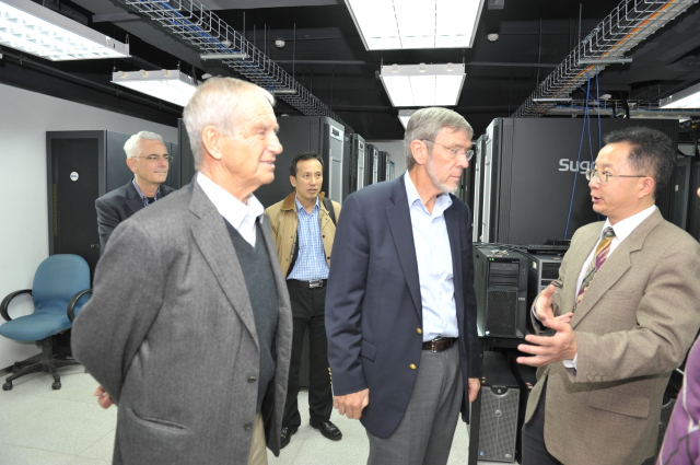 诊断评估预备会上,潘教峰副秘书长向专家组简要介绍中科院的基本情况,详细讲解了此次专家诊断评估的目的和要求,并向各专家组成员颁发了中科院国际评估专家聘任证书。接下来第一天的日程基本为研究所向专家详细讲解研究所的科研状态,包括由邹冰松所长的研究所总体报告,陈晓松副所长的卡弗里国际交流平台的进展报告及杨金民、周宇峰、马建平、周善贵、蔡荣根、李淼、周海军、王延颋、虞跃、易俗等10位研究人员的领域研究进展报告。报告间隙中专家组参观了理论物理研究所新建的高性能计算平台,所图书馆以及《理论物理通讯》编辑部。评估的第二天,专家组分别与研究所的研究人员、研究生以及前两任所长、所学术委员会主任、所战略发展委员会主任、近年新进所研究人员进行了座谈,进一步了解相关情况。