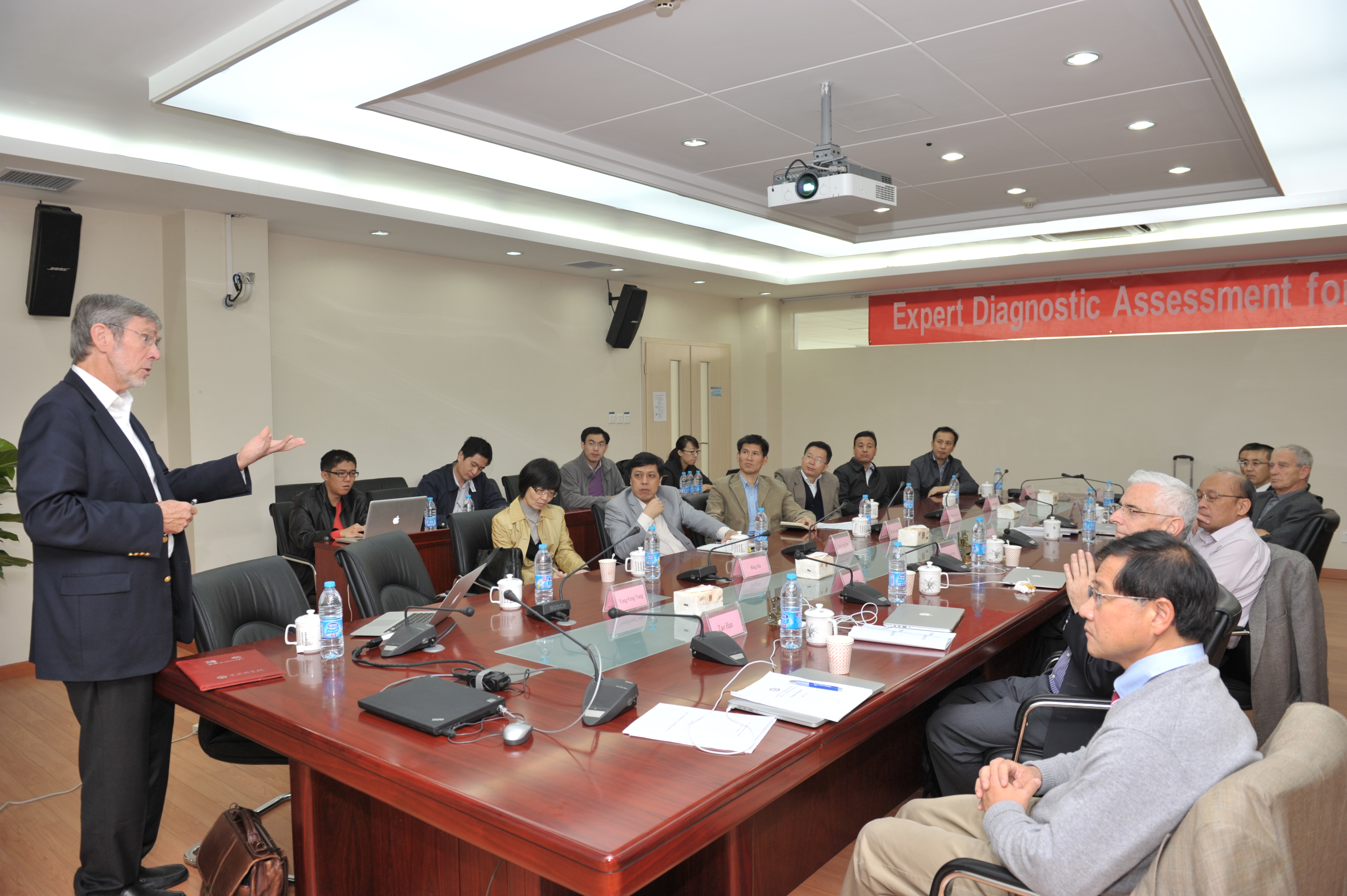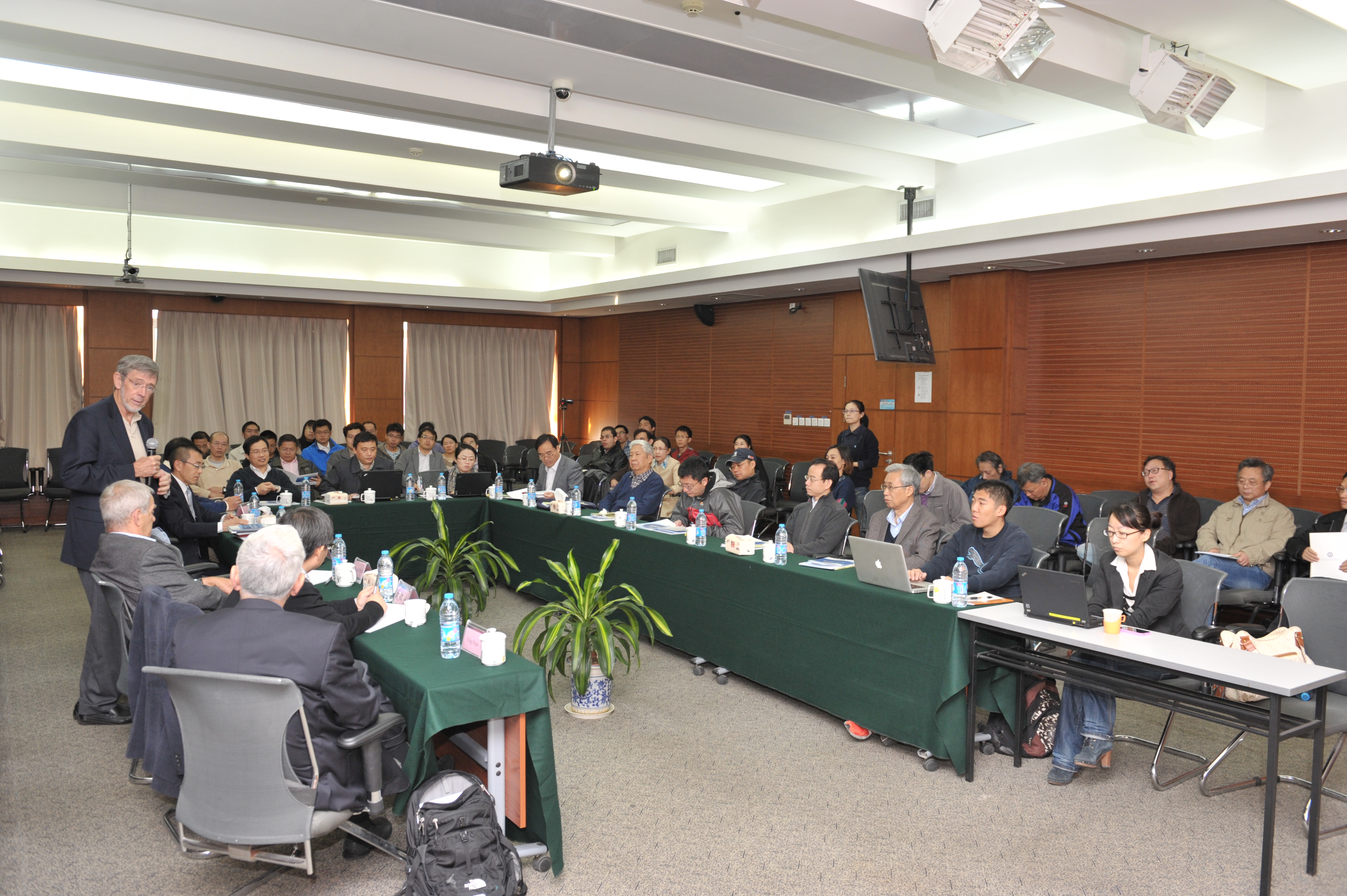 10月15~17日,由理论物理各领域的7位国际著名科学家组成的专家团来我所进行了“一三五”专家诊断评估。专家组成员有美国Princeton大学的Curtis Callan教授(美国科学院院士、曾任美国物理学会主席)、香港科技大学的Henry Tye 教授,法国高等师范学院的Edouard Brezin教授,美国Pittsburgh 大学的Tao Han教授,芝加哥大学的Craig Hogan教授,加州理工学院Hirosi Ooguri教授,清华大学翁征宇教授,其中,Curtis Callan教授和Henry Tye 教授担任组长和副组长。为更好地组织好此次评估工作,专家组长Callan教授在评估日期前一天到达,与中国科学院詹文龙副院长、国际合作局曹京华副局长、发展与规划局奖励处石兵处长进行了沟通交流。