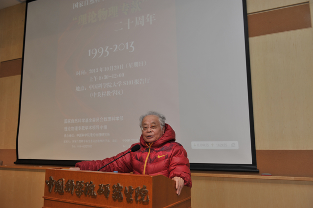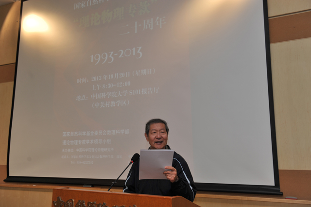 2013年10月20日由国家自然科学基金委员会主办、中国科学院理论物理研究所承办的“理论物理专款二十周年”报告会在中国科学院理论物理研究所顺利召开。国家自然科学基金委员会主任杨卫院士,中国科学院副院长詹文龙院士,北京大学陈佳洱院士,国家自然科学基金委员会沈文庆院士,中国科学院前沿科学与教育局局长许瑞明研究员,国家自然科学基金委员会数理学部常务副主任汲培文研究员、副主任孟庆国研究员;理论物理专款学术领导小组组长欧阳钟灿院士、副组长陶瑞宝院士、陈润生院士、委员夏建白院士、赵光达院士、邢定钰院士、吴岳良院士、孙昌璞院士、黄涛研究员、李学潜教授、李定研究员、朱少平研究员、冯世平教授、方忠研究员、罗民兴教授、卢建新教授、梁作堂教授、朱世琳教授、邹冰松研究员,何祚庥院士、张宗烨院士、张肇西院士,北京计算科学研究中心主任林海青研究员、湖南师范大学副校长匡乐满教授以及全国理论物理学界的同行共计200多人参加了会议。 国家自然科学基金委员会主任杨卫院士发表了热情洋溢的讲话。他肯定了二十年来“理论物理专款”作为科学基金支持纯基础研究的一种尝试,在均衡学科发展、培养青年人才、稳定人才队伍、改善研究环境、促进学术交流、弘扬学术思想、探索符合理论物理学科特色的研究与资助模式等诸多方面发挥了不可替代的“种子基金”作用。他指出目前“理论物理专款”正处于承上启下的关键时期,希望专家们立足中国理论物理学的总体发展,加强统筹规划,充分发挥学术领导小组顶层设计的作用,促进理论物理学科的蓬勃发展,为推动中国理论物理的持续发展做出有特色的贡献;希望努力提高“理论物理专款”的资助效率,争取更大的投入和发展;希望注重发挥理论物理的引领作用,通过“理论物理专款”分析物理领域发展的突破点,培育出具有引导潮流性的学科,促进新观点、新理论、新方法和新模型的提出与发展,拓展出新的途径和方向;希望通过科学基金的支持圆每一位科技工作者的探索之梦。杨卫主任表示,“如果条件允许,基金委会考虑进一步加大对‘理论物理专款’的投入力度。” “理论物理专款”学术领导小组组长欧阳钟灿院士致词,对国家自然科学基金委员会和基金委数理学部领导在“理论物理专款”设立和发展过程中的鼎力支持表示由衷的感谢。他表示,“理论物理专款”能顺利开展工作,坚持二十年,与历届基金委领导的支持和重视、基金委数理学部领导的艰苦工作、“理论物理专款”学术领导小组成员勤勤恳恳的工作以及中国科学院理论物理研究所同事们的无私支持和帮助密不可分。 国家自然科学基金委数理学部常务副主任汲培文主任作了题为《感谢、回顾和展望》的报告。他简单回顾了“理论物理专款”所走过的二十年历程。希望通过“理论物理专款”学术领导小组的精心部署,理论物理学界的同仁们能够高举旗帜、发挥效能、勇于探索、推动发展,进一步扩大“理论物理专款”的效能,提升能创造未来、开拓新领域的能力。 中国科学院前沿科学与教育局局长许瑞明研究员对理论物理学界的同行们在过去二十年所取得的辉煌成就表示祝贺。他提到二十年的专款资助是真正“先导”工作的一个范例。希望在未来的发展中,更加注重实验和理论的交叉研究,在发展理论物理研究的同时,积极主动的与实验研究相结合,促使原始思想的产生。 报告会上,中国科学院副院长、中国物理学会理事长詹文龙院士应邀作了题为《理论物理与大科学装置》的特邀报告。中国科学院陈润生院士和孙昌璞院士分别作了《理论物理专款二十年总结》和《我国理论物理的现状与发展》的大会报告。 最后,中国科学院理论物理研究所邹冰松所长代表此次会议的承办方致词。他对国家自然科学基金委的历届领导、中国科学院历任领导以及全国理论物理同行表示感谢。他表示理论物理研究所将尽最大的能力,充分利用理论物理国家重点实验室平台更好的为全国理论物理界服务。希望全国理论物理界同行能够携起手来,在国家基金委的支持下,将理论物理工作做得更好,走向新的辉煌!