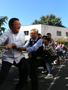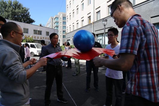 为庆祝建国、建院67周年,进一步丰富全所人员的业余文化活动,强化健身意识,以强健的体魄投入到国家和科学院的建设中,理论物理所于2016年9月28日上午成功举办了迎国庆趣味运动会。科研骨干、博士后、研究生以及管理和支撑部门职工90余人参加了此次趣味运动会,欧阳钟灿院士、邹冰松所长、牟克雄书记、陈晓松副所长也作为队员参加了比赛。所长邹冰松宣布运动会开幕。  此次趣味运动会共设置了拔河、众星捧月、团体运球接力、车轮滚滚等趣味竞赛项目。为了使运动会内容更加丰富多彩、老少皆宜、参加人数更多,今年的趣味运动会所有项目均设置为集体项目,在强健大家体魄的同时,陶冶了情操,加强了相互交流,增强大家的团队协作能力。 首先拉开了序幕的是拔河比赛,大家充分发扬“贵在参与”的精神,全员参加,经过两轮激烈的角逐,一室师生代表队获得比赛冠军。在随后的众星捧月、团体运球接力和车轮滚滚中,二室师生代表队表现突出,获得团体运球接力和车轮滚滚项目的冠军,职能部门代表队也表现不俗,获得众星捧月项目比赛冠军。本次趣味运动会融娱乐性、趣味性于一体,以新颖、活泼、文明的风格特点,展现了我所广大职工和研究生团结、奋发的精神风貌,不仅丰富了大家的业余生活,缓解工作、学习压力,更增进了彼此间的沟通与交流,同时也为即将到来的国庆增加了节日的气氛。  |