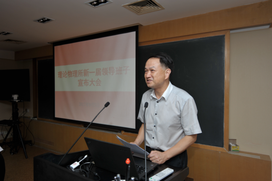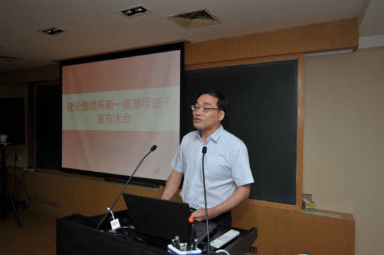 孙晓明局长宣布了中国科学院党组的任免通知:蔡荣根同志任理论物理研究所副所长(主持工作),陈晓松同志任理论物理研究所副所长、党委副书记,王延颋同志任理论物理研究所副所长、纪委书记。
