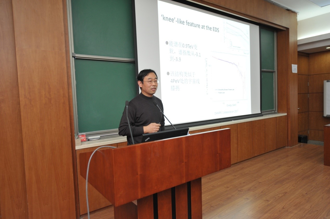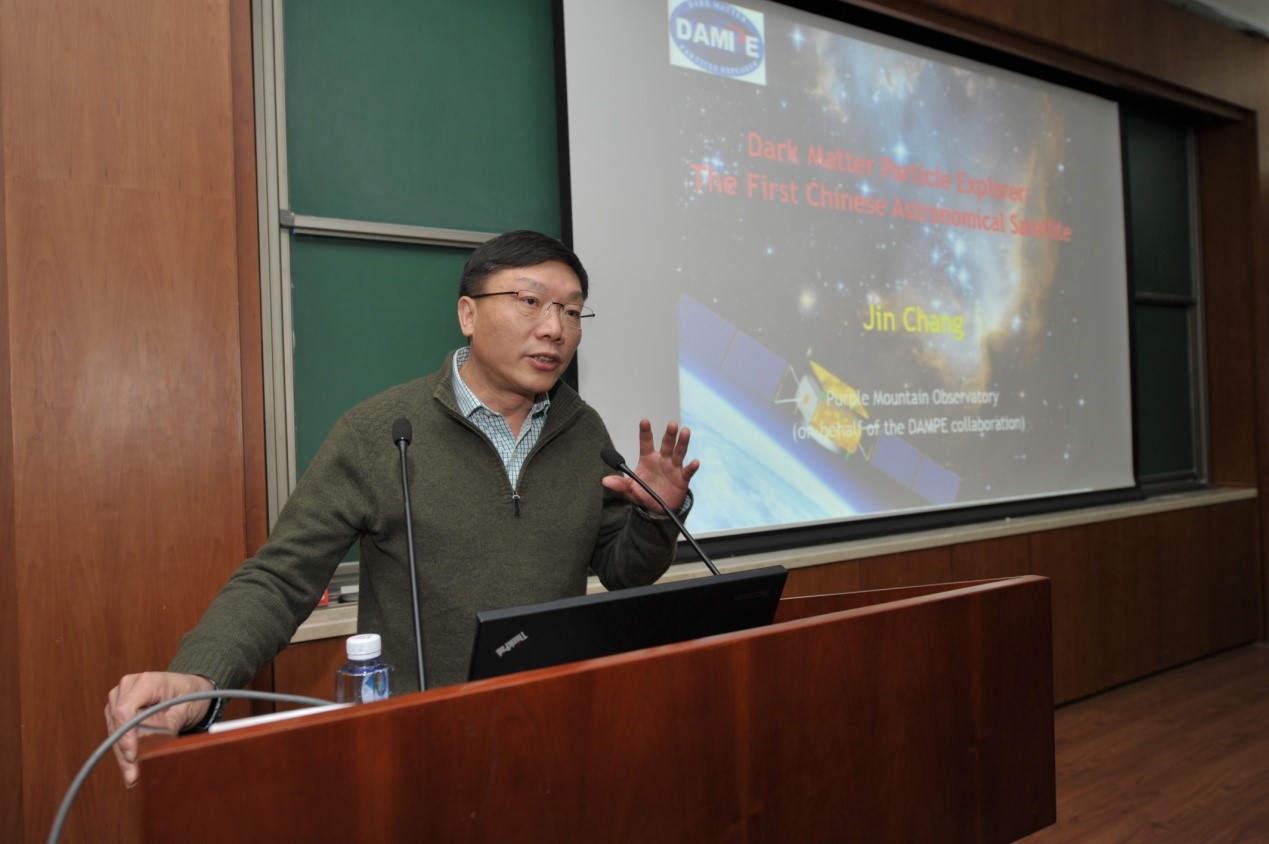 12月7日下午,中国暗物质探测卫星“悟空”的首个物理结果研讨会在中科院理论物理研究所召开。来自中国科学院大学、北京大学、清华大学、北京师范大学、上海交通大学、山东大学等高校,中科院理论物理所、高能物理所、数学与系统科学学院、国家天文台等科研院所的相关专家和研究生约160人参加了此次研讨会。 此次研讨会是“悟空”物理结果发表后,首次针对其物理结果的学术研讨会。会议把粒子物理、宇宙学、天文学方面的专家聚在一起,在第一时间分享和讨论其结果的理论解释和对未来暗物质探测的影响。研讨会邀请中科院紫金山天文台常进研究员(“悟空”项目首席科学家)作特邀报告,为大家详细介绍了“悟空”卫星的设计建造,在轨运行情况和首个观测结果。理论物理所周宇峰研究员从理论角度介绍了“悟空”结果的数据特点和当前的国际国内研究状况。从暗物质子结构和天体物理两个方面探讨了可能的理论解释,以及未来可以预期的新发现。高能物理所毕效军研究员也做了理论分析报告,从“悟空”号观测到的谱特点分别从暗物质和天体源的角度分析了可能起源。 理论物理所副所长(主持工作)蔡荣根院士和国科大副校长/理论物理所吴岳良院士主持了研讨会。蔡荣根说到,2009年我所吴岳良院士主持了973暗物质理论研究和实验预研项目,理论物理所作为项目的依托单位,组织大家开展暗物质理论和实验研究工作。当时项目包含理论研究组和几个实验研究组。实验预研包括常进负责的空间暗物质探测,岳骞和季向东分别负责的锦屏地下暗物质探测。在那个973项目的推动下,几年来,这几个实验组都涌现出了一批非常重要的成果。我国的暗物质探测从“无”到“有”,从“跟踪”变成了世界“领先”,实现了跨越式发展。习近平总书记在十九大报告中对我国的科学技术发展提出了殷切的希望,也吹响了向世界科技强国进军的集结号。这次“悟空”的首个物理结果意义非常重大,但也还是我们前进道路上的一步,希望我国能够在暗物质、暗能量、引力波和宇宙演化等基础研究前沿做出更大的贡献。 常进研究员在报告中说到,理论物理所对“悟空”暗物质卫星探测项目的立项和早期的工作给予了大力的支持。多年前在理论物理所汇报空间探测暗物质的想法时,何祚庥先生、欧阳钟灿院士都很支持,后来吴岳良院士又把我们和岳骞、季向东等一起组织起来开展973项目研究。张肇西院士、邹冰松所长、蔡荣根所长都非常关心项目的进展。这次来理论物理所是向大家汇报一下卫星的状况和后续将要开展的研究计划。 学术报告后,与会人员展开了热烈的讨论,对我国“悟空”号所取得的成果表示热烈祝贺。大家回顾了国内暗物质探测的历程,对未来的探测计划和理论研究进行了深入的探讨。何祚庥院士,张肇西院士,赵光达院士,国家自然科学基金委数理学部董国轩副主任和蒲钔处长也参加了这次研讨会。