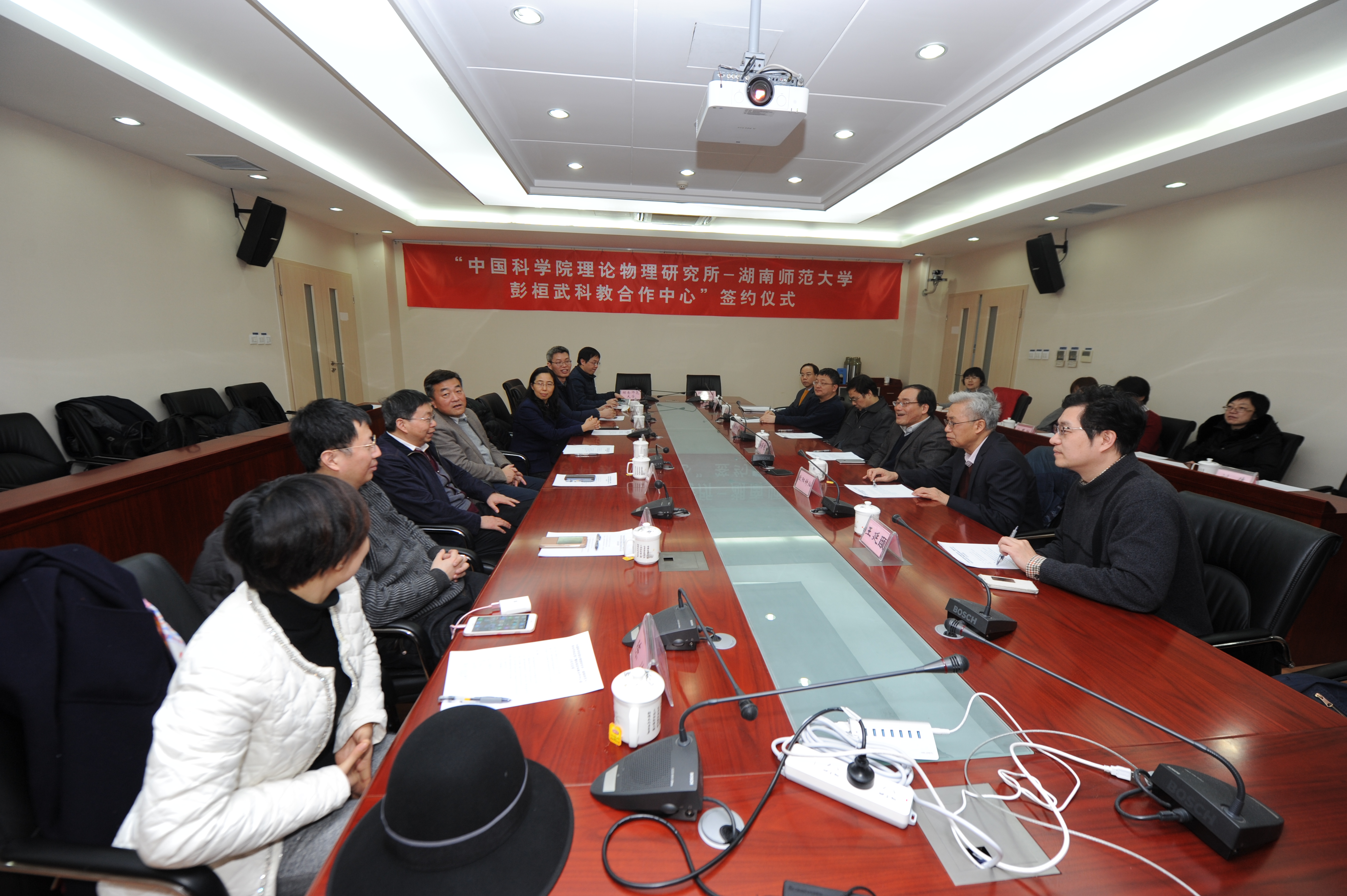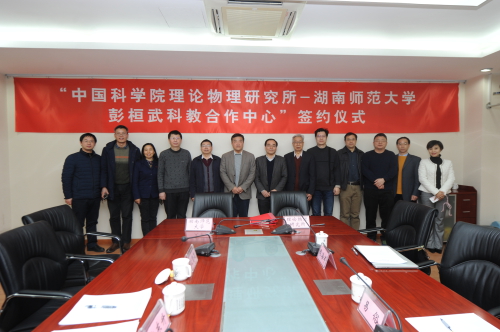 2018年2月9日,中国科学院理论物理研究所与湖南师范大学合作框架协议签署暨“中国科学院理论物理研究所—湖南师范大学彭桓武科教合作中心”成立仪式在理论物理所举行。仪式由理论物理所副所长、纪委书记王延颋主持并致欢迎辞,理论物理所蔡荣根副所长(主持工作)、欧阳钟灿院士、湖南师范大学党委书记李民、副校长匡乐满等出席仪式。王延颋副所长和匡乐满副校长代表双方签署合作框架协议。 签约仪式前,蔡荣根副所长带领李民书记一行参观了理论物理所所史展示墙,并介绍了理论物理所的历史沿革,在理论物理所工作和学习过的院士,以及理论物理所取得的重要研究成果。 签约仪式上,湖南师范大学党委书记李民对在农历小年之际仍坚守岗位、认真科研的理论物理所专家们表示敬佩,并提前拜年,对理论物理所长期以来给予湖南师范大学的支持与合作表示感谢。他指出湖南师范大学创建于抗日烽火中,是地方高校中唯一一所入选国家“双一流”建设的高校,今年将迎来80周年校庆。学校十分重视本科生的教学质量,重视科学研究和学科建设,理论物理学科是湖南师范大学6个国家重点学科之一,理论物理所之前为学校争取到湖南省“2011协同创新中心”“量子效应及其应用”提供了极大的支持和帮助。李民书记表示此次与理论物理所联合建立彭桓武科教合作中心将极大地促进湖南师范大学物理学科的建设和发展,学校党委和行政班子高度重视该中心的建设,将一如既往地提供支持。 蔡荣根副所长表示虽值年末,但是大家的热情不减,对李民书记一行在春节前来理论物理所调研交流表示热烈欢迎。在老一辈理论物理学家的前瞻性布局和历任所领导的努力下,理论物理所目前拥有一支高水平的科研队伍,研究方向覆盖了理论物理的各个前沿领域,在学术交流、人才培养和科学产出等各个方面均取得了很好的成绩。近年来,理论物理所引进了一批基础扎实、视野开阔、勤奋上进的年轻人,最近他们做出了一批具有重要国际影响力的研究成果,这些为理论物理所的可持续性发展打下了良好的基础。蔡荣根副所长指出理论物理所与湖南师范大学双方一直在人才培养、学术交流和科研合作等方面保持着良好的合作关系,他希望通过签署这个合作协议,切实贯彻刘延东副总理视察科学院时提出的“科教结合、协同育人”的理念,使理论物理所与湖南师范大学原有的合作规范化,继续拓展合作空间,进一步加深合作交流,使彭桓武科教合作中心真正落地。希望学校能够鼎力支持,使得该中心能够起到很好的示范和带头作用。 湖南师范大学物理与信息科学学院院长唐东升与理论物理所副所长王延颋分别介绍了“中国科学院理论物理研究所—湖南师范大学彭桓武科教合作中心”的筹建背景、中心运作计划等情况。 签约仪式后,双方进行了亲切的座谈,理论物理所欧阳钟灿院士,湖南师范大学匡乐满副校长等先后讲话。大家表示很高兴看到双方签署这样的合作协议,现在国家各项事业蒸蒸日上,高度重视基础研究,特别是不久前国务院印发了《关于全面加强基础科学研究若干意见》,更是为基础研究提供了制度层面的支持和保障。借着国家科技政策的东风,以签署合作协议为契机,双方可以优势互补、合作共赢,走出一条人才培养和学术交流的新路。 理论物理所研究室、院重点实验室、彭桓武理论物理创新研究中心、综合处、科研处、人事教育处、湖南师范大学党委办公室、科技处、人事处、物理与信息科学学院等相关负责人参加了签约仪式。