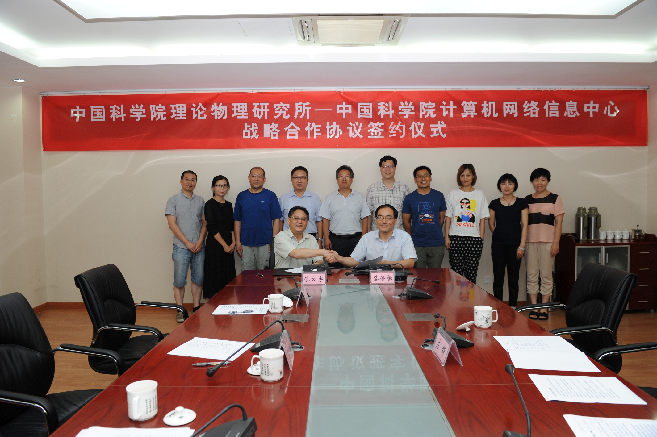 2018年7月17日,理论物理所与中科院计算机网络信息中心战略合作协议在理论物理所签署。理论物理所副所长(主持工作)蔡荣根院士、副所长王延颋研究员、中科院计算机网络信息中心主任廖方宇研究员、业务发展处副处长李树仁、高性能计算部主任金钟研究员等出席签署仪式。签署仪式由理论物理所王延颋副所长主持,计算机网络信息中心廖方宇主任和理论物理所蔡荣根副所长代表双方签署战略合作框架协议。 签约仪式前,蔡荣根副所长带领廖方宇主任一行参观了理论物理所所史展示墙,介绍了理论物理所的历史沿革、在理论物理所工作和学习过的院士、以及理论物理所取得的重要研究成果。 廖方宇主任首先对理论物理所建所40年再次表示祝贺,他表示经过40年的发展理论物理所已成为国内外同行认可的理论物理研究中心,并回顾了他到中科院工作以来与理论物理所的交往历史。他指出我国计算机最早是在“两弹一星”中开始应用的,并介绍了计算机网络信息中心成长、发展、壮大的历程。廖主任介绍了计算机网络信息中心将承担中科院“十三五”信息化规划和建设的情况,“十三五”期间将进一步整合院内外优势科技基础设施,牵头建设“中国科技云”。相信战略合作协议签署后,通过与理论物理所在超级计算资源共享、项目合作、科研信息化、人才培养、技术培训等方面的深入合作,将共同加强科学计算与科学数据在理论物理研究中的应用,助力理论物理研究所产出重大原创性成果。 蔡荣根副所长致欢迎辞,他表示在“两弹一星”元勋彭桓武、周光召等老一辈理论物理学家的前瞻性布局和历任所领导的努力下,理论物理所目前拥有一支高水平的科研队伍,研究方向覆盖了理论物理的各个前沿领域,在学术交流、人才培养和科学研究等各个方面均取得了很好的成绩。近年来,理论物理所引进了一批基础扎实、视野开阔、勤奋上进的年轻人,最近他们做出了一批具有重要国际影响力的研究成果,这些为理论物理所的可持续性发展打下了良好的基础。他指出理论物理的研究总是走在科技的最前沿,理论物理所作为国际化研究所一直坚持开放办所的理念,学术交流频繁,“十三五”期间研究所重点部署了六个研究方向。在数据与计算驱动科学发现的信息化时代,基础科学研究更离不开信息化的支撑,计算模拟已成为与理论、实验并列的第三种研究范式。希望签约后,充分发挥双方的人才优势和资源优势,围绕理论物理前沿重大科学问题和国家战略需求,开展务实合作,在建设科技强国的新征程中贡献自己的力量。 随后,蔡荣根副所长和廖方宇主任代表双方签署战略合作协议。 签约仪式后,双方进行了亲切的座谈,分别回顾了双方战略合作协议的筹备背景、合作计划等情况。大家表示很高兴看到双方签署合作协议,现在国家高度重视基础研究,特别是不久前国务院印发了《关于全面加强基础科学研究若干意见》,更是为基础研究提供了制度层面的支持和保障。借力国家科技政策的东风,以签署战略合作协议为契机,双方通过优势互补、合作共赢,发挥双方的人才优势和资源优势,面向宇宙演化、物质结构、生命起源等基础前沿领域进行合作,开展相关算法研究,开发理论物理专业软件,探索交叉学科项目合作、人才培养、学术交流和技术服务的长效机制。 理论物理所科研处、人事教育处、科学计算与信息平台办公室等相关负责人参加了签约仪式。