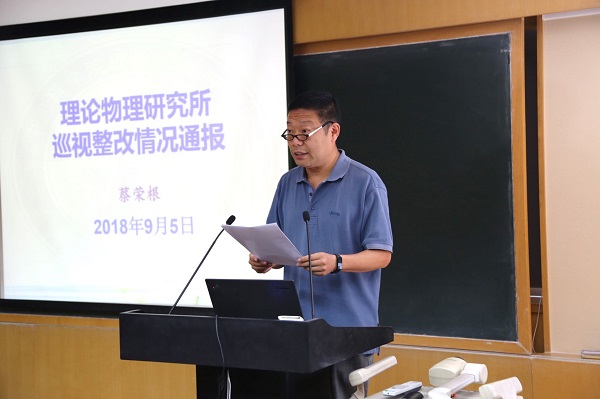 2018年9月5日,根据中科院巡视工作要求,理论物理所召开党员干部大会,通报巡视整改情况,院巡视办巡视整改督办处副处长赵春同志、李文娜同志参加会议,全所职工、离退休代表、博士后代表、研究生代表近50人参加了会议,会议由党委书记冯稷同志主持。 副所长(主持)蔡荣根同志代表党政领导班子作了巡视整改情况的报告。他从 “整改组织落实、台账问题整改、移交的问题线索整改、销账审核意见整改、整改工作体会”等五个方面向全所党员干部通报了巡视整改情况。他指出,理论物理所所党政领导班子高度重视巡视整改工作,召开专题会议制定整改方案,细化分解整改事项,落实整改责任,狠抓整改落实,将整改工作与推动各项日常工作有机结合,取得了很好的整改效果。他代表领导班子对院巡视办、巡视组对理论物理所全方位的体检表示感谢,对全所职工的大力支持表示感谢。他指出,通过巡视整改,理论物理所党政班子进一步提高了政治站位,增强了理论水平,进一步增强了领导班子贯彻落实院党组“三个面向”“四个率先”办院方针的主动性。进一步提高了领导班子、管理职能部门制度建设和理论学习的自觉性,增强了制度观念,加强了监督检查,防范了腐败风险。进一步强化了领导班子履行“抓班子、带队伍,定规划、把方向,抓大事、谋发展”的职责定位。他要求班子成员要严格要求自己,以上率下,起到头雁作用;要勤于沟通,求同存异,共谋大事,共谋发展;团结全所职工为将理论物理所建设成为世界一流研究所作出自己的贡献。 党委书记冯稷同志代表所党委对做好巡视整改“后半篇”工作提出了要求。他指出党的十九大站在全面从严治党的高度,作出了深化政治巡视的重大部署,对标巡视工作要求,要坚持问题导向,以永远在路上的执着和韧劲,扎实做好巡视“后半篇文章”。党政领导班子要强化政治担当,提高政治站位,加强统筹配合,努力形成工作合力。要充分发挥党委战斗堡垒作用,加强基层党的建设,以党建促创新,持续开展“两学一做”学习教育。引导广大党员不忘初心,牢记使命,增强“四个意识”,坚定“四个自信”,弘扬爱国奋斗精神、建功立业新时代,做新时代的奋斗者。要持续开展创新文化建设,激发活力,凝聚人心,形成共识,为实现“三个面向”“四个率先”提供政治保障,为研究所未来发展奠定基础。要严格执行中央八项规定精神,坚决反对“四风”,强化廉洁从业意识,规范工作流程,强化制度执行力度,建设风清气正的研究所。 通报会上,与会党员干部认真填写了《巡视工作满意度测评表》,并交巡视办同志收回。