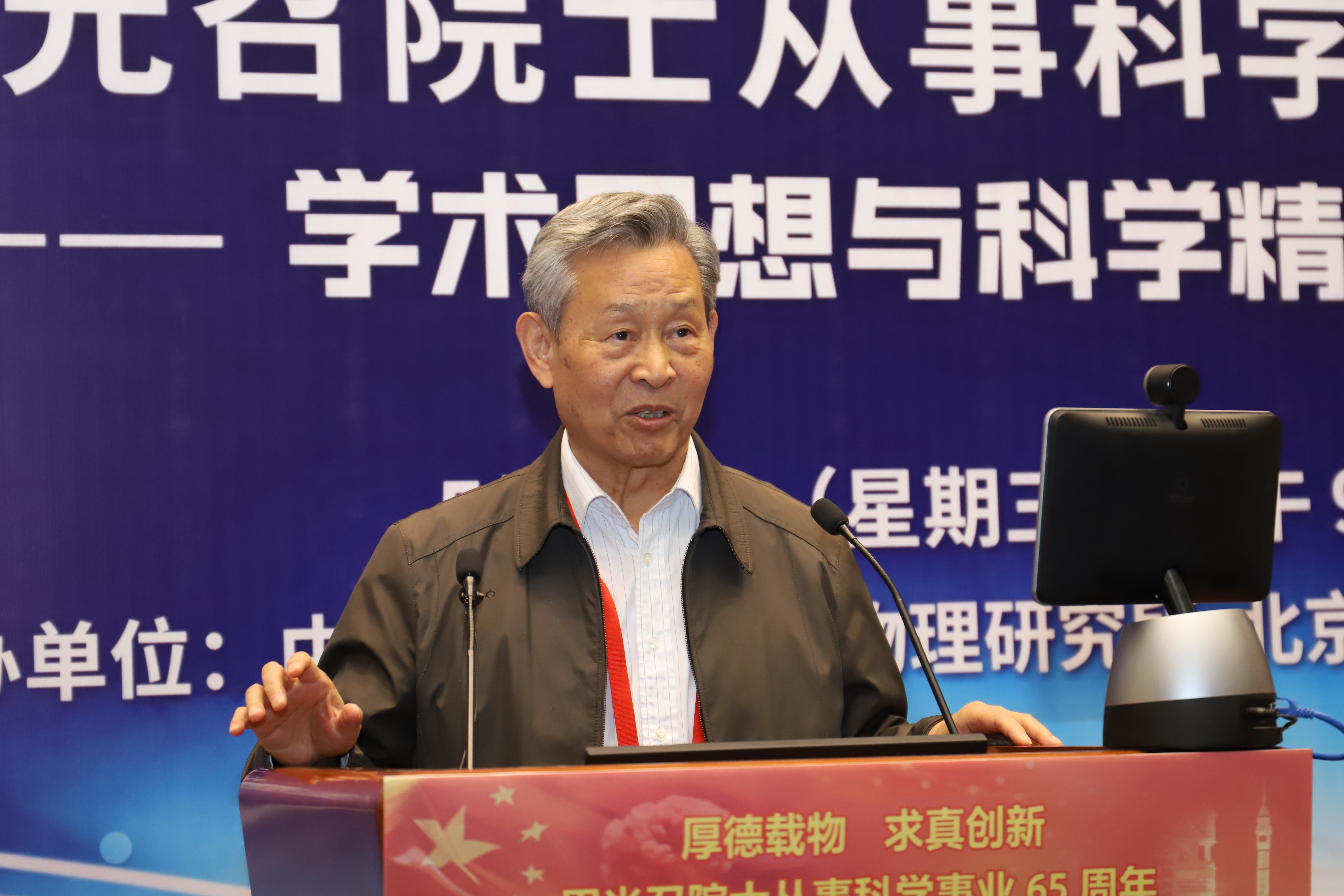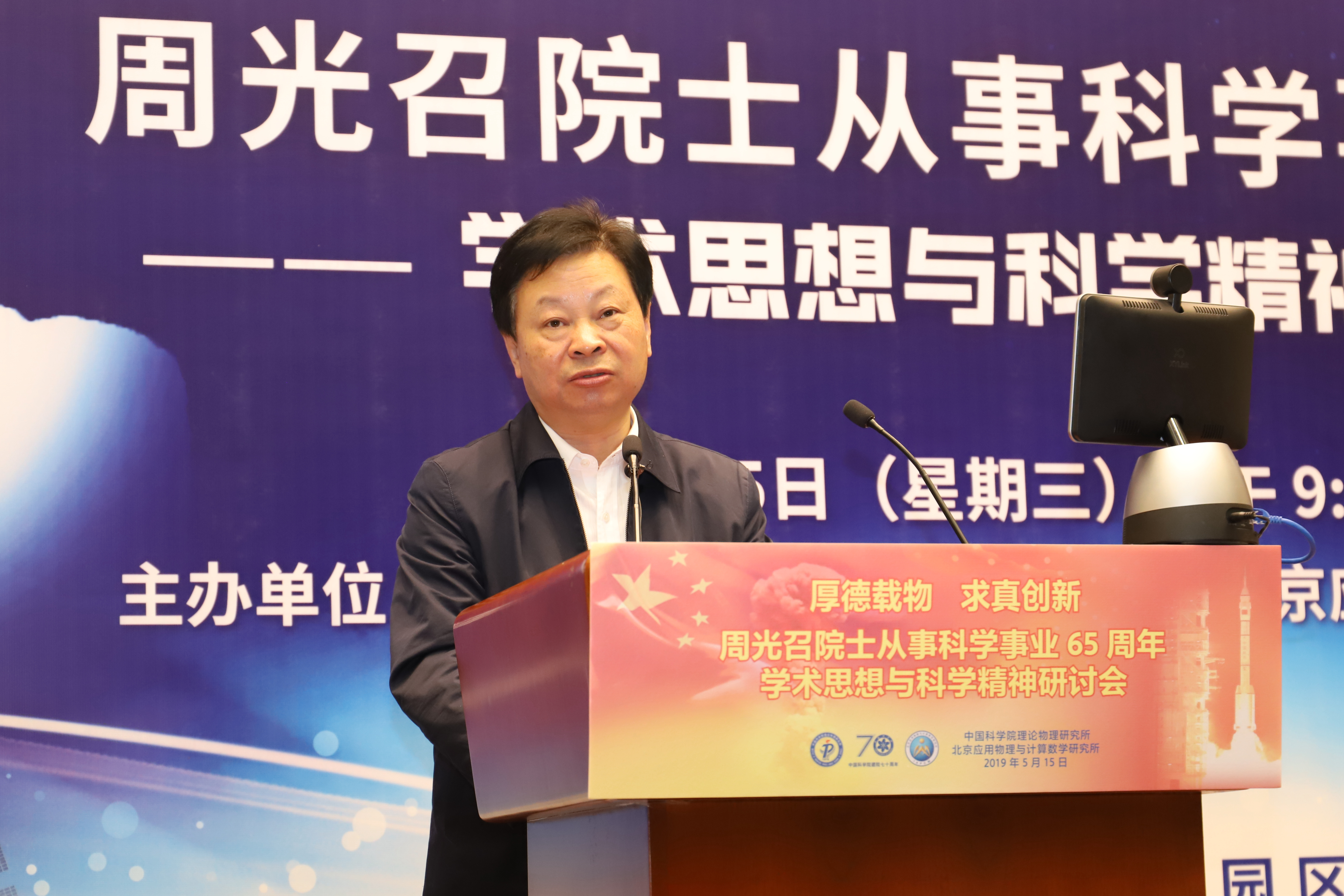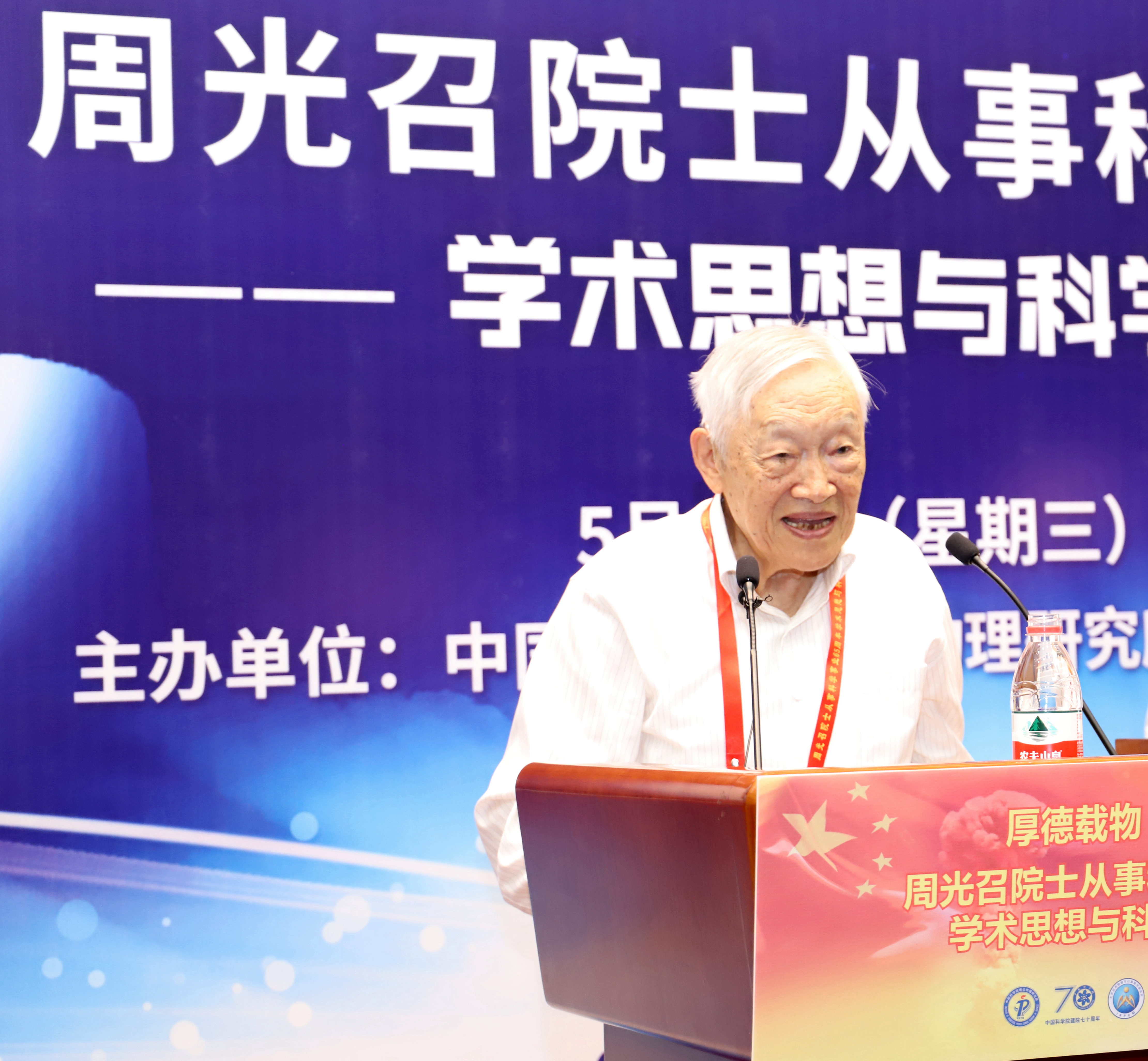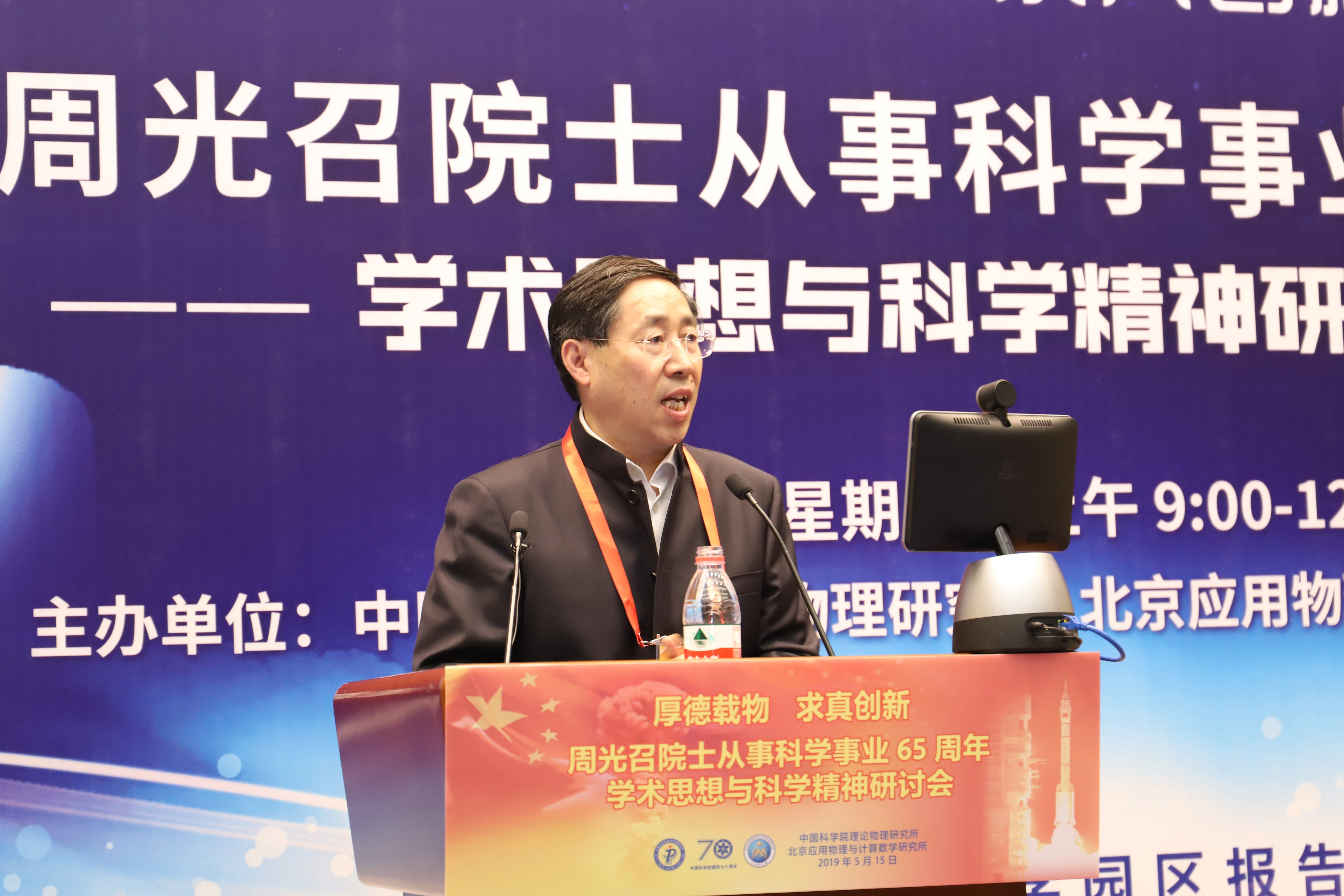 2019年是“两弹一星”功勋周光召院士从事科学事业65周年,也是新中国成立70周年、中国科学院建院70周年,5月15日恰逢周光召院士90华诞。为传承“两弹一星”精神,弘扬周光召等老一辈科学家严谨求实的科学精神,激励青年学子弘扬爱国奋斗精神,建功立业新时代,为中华民族伟大复兴做出贡献,中国科学院理论物理研究所与北京应用物理与计算数学研究所于5月15日联合举办了《周光召院士从事科学事业65周年学术思想与科学精神研讨会》。 诺贝尔物理奖获得者杨振宁出席研讨会并发言,叶铭汉院士宣读诺贝尔物理奖获得者李政道贺信。 全国政协副主席、中国科协主席万钢出席研讨会并发表重要讲话,中国科学院副院长李树深受中国科学院院长、学部主席团执行主席白春礼委托宣读贺信,中国工程院原副院长杜祥琬受中国工程院院长李晓红委托发言,国家自然基金委员会主任李静海,科学技术部基础司司长叶玉江代表科学技术部,中国物理学会原理事长杨国桢受中国物理学会理事长詹文龙委托,中国工程物理研究院院长刘仓理,清华大学校长周光召基金会“应用科学奖”第一届获得者邱勇,中国科学技术大学校长包信和,北京大学学科建设办公室主任张平文院士受北京大学校长郝平委托,中国科学院大学副校长苏刚代表中国科学院大学,湖南省科技厅副厅长、湖南光召科学技术基金会理事贺修铭等在研讨会上发言。 中国科协党组书记怀进鹏,国务院发展研究中心原主任党组书记张玉台出席研讨会。 科学技术部原部长徐冠华做“周光召院士对我国科技事业的贡献”主题报告,中国科学院大学副校长吴岳良做“周光召院士的学术成就”主题报告。 中国科学院原党组副书记郭传杰、联想控股董事长柳传志、中国科学院国科控股董事长吴乐斌、贺贤土院士、欧阳钟灿院士等到会发言。周光召院士的女儿周莹女士在研讨会最后作简短发言。 研讨会由中国科学院理论物理研究所蔡荣根院士、北京应用物理与计算数学研究所王建国所长主持。 出席此次研讨会科技界领导、专家、老同志和青年学生代表近300人,其中两院院士有包信和、蔡荣根、陈式刚、戴元本、杜祥琬、葛墨林、何祚庥、贺贤土、胡思得、怀进鹏、李静海、李树深、李惕碚、罗民兴、马余刚、欧阳钟灿、彭先觉、邱勇、沈文庆、苏肇冰、孙昌璞、王鼎盛、王恩哥、王震西、吴岳良、席南华、夏建白、邢定钰、徐冠华、杨国桢、杨振宁、叶朝辉、叶铭汉、于渌、张平文、张维岩、张肇西、赵光达、赵宪庚、赵忠贤、朱邦芬等40余名。 周光召由于身体原因没能出席研讨会。中科院院长白春礼、中国科协党组书记怀进鹏、中国工程院院长李晓红、清华大学校长邱勇等在研讨会前分别代表单位并以个人名义专程到医院看望了周光召。中科院物理所、中科院重大任务局等单位向研讨会发来贺信表示祝贺。 研讨会得到了中科院院士工作局的大力支持,纳入中国科学院建院70周年系列活动。研讨会也得到了中科院科学传播局、中国科协“周光召成长采集工程项目组”、中科院声像中心的大力支持。筹备组还将设立专题网站进一步宣传周光召的学术思想和科学精神。 周光召曾说“一个民族要在精神上站立起来,必须要有自信,必须要有伟大的科学家和重大的发明来提升整个民族精神和自信心。” 为传承周光召开放交融、求真创新的学术思想,弘扬周光召追求真理、实事求是的科学精神,研讨会筹备组将周光召关于科技创新、科学普及、基础研究、人才培养等部分讲话汇集成册,以飨读者。 周光召的学术思想与科学精神曾经深刻影响了我国理论物理、基础研究、科技事业的发展历程,也必将对我国理论物理学科建设、基础科学研究、科技事业未来发展、创新型国家建设产生深远影响。 让我们接力周光召的精神火炬,奋进新长征,紧密团结在以习近平同志为核心的党中央周围,为实现中华民族的伟大复兴的中国梦做出贡献。
