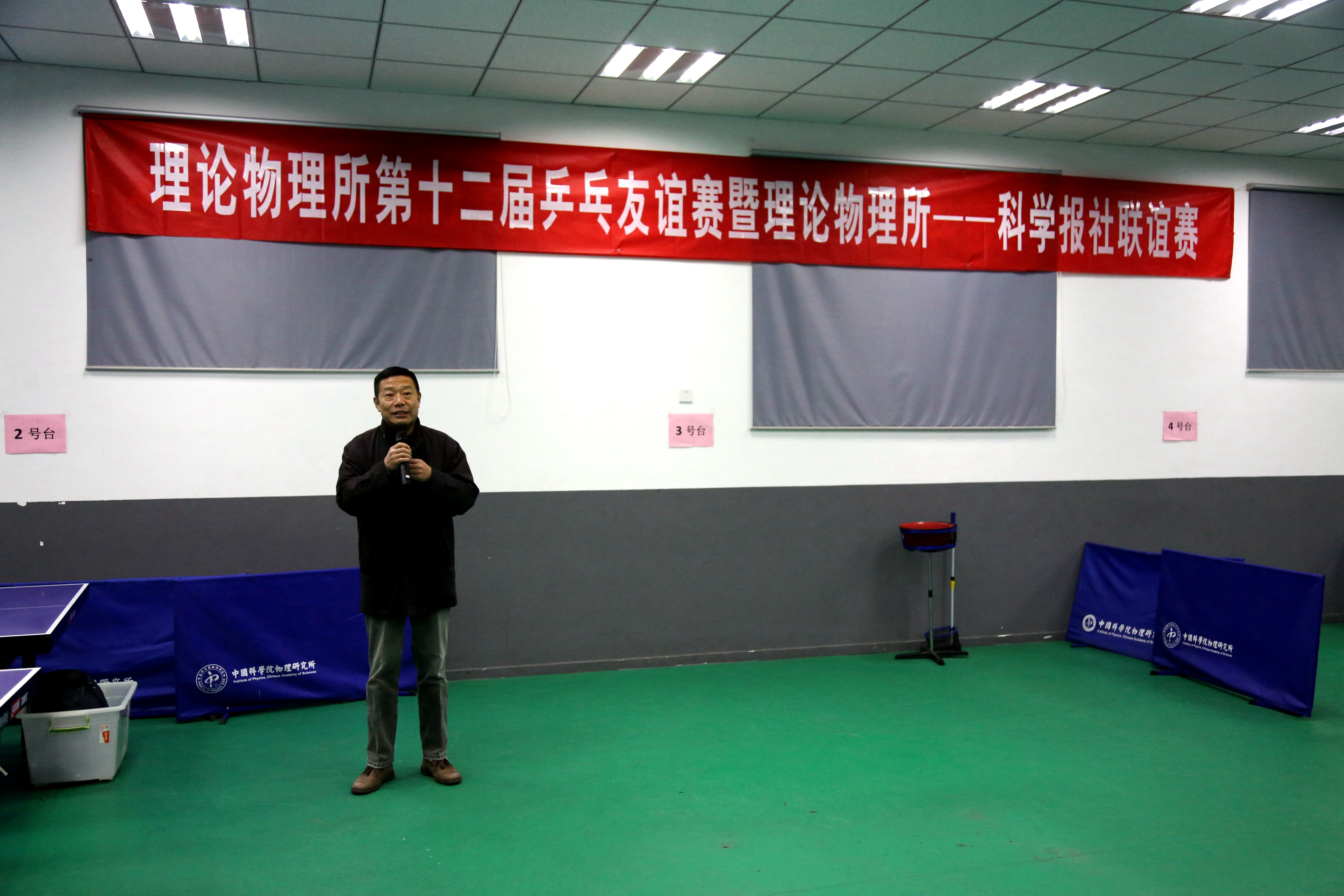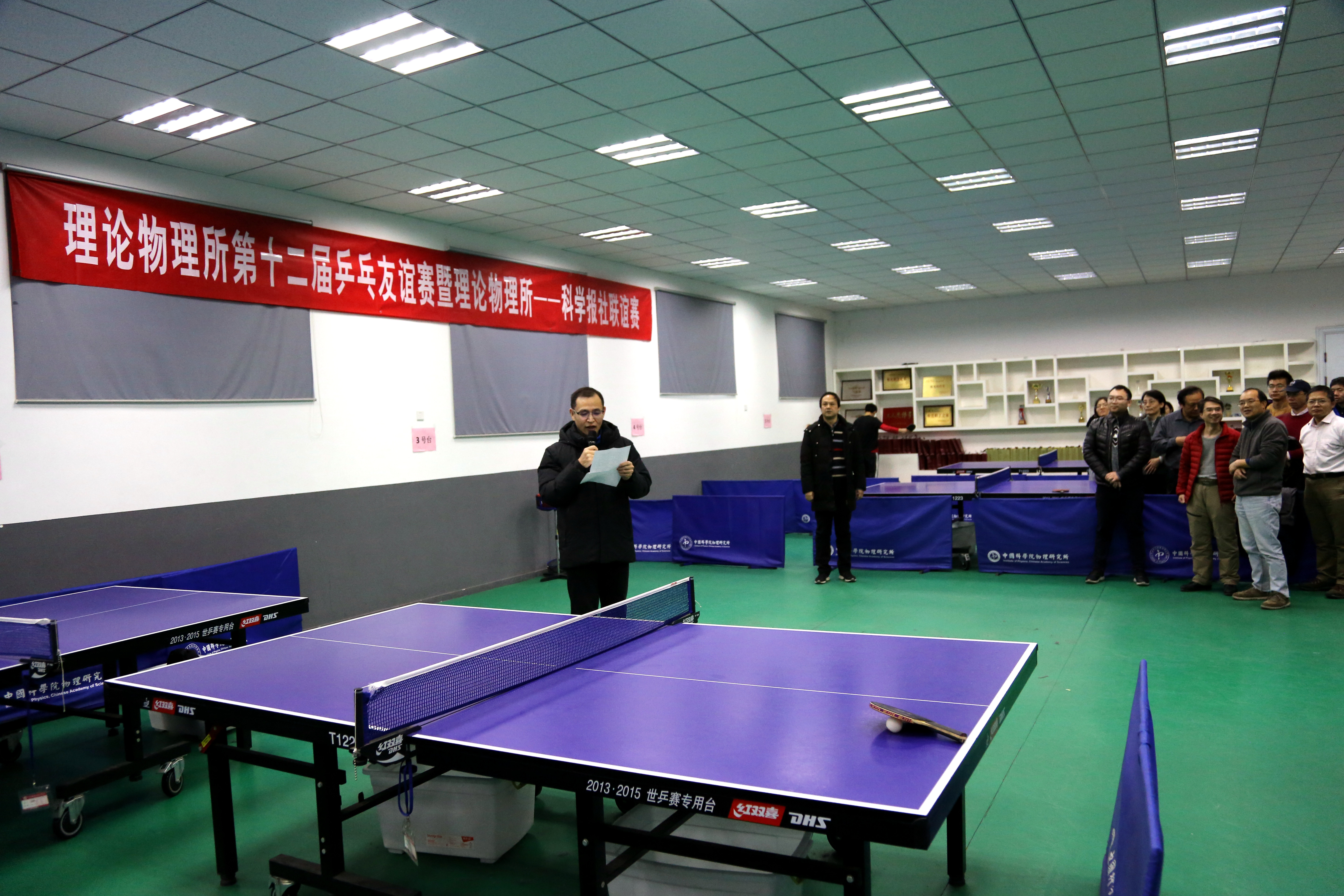 12月24日,理论物理所与科学报社成功举办了首届乒乓球联谊赛暨理论物理所第十二届乒乓球友谊赛。理论物理所所长蔡荣根与科学报社工会副主席魏刚开球启动联谊赛,理论物理所师生及科学报社职工代表共计100余人参加了活动。开幕式由理论物理所工会主席周宇峰主持。