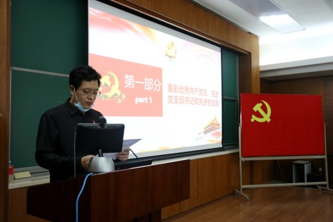 党员大会在嘹亮的国歌声中拉开帷幕,王延颋同志代表所党委宣读优秀共产党员、先进党支部书记、先进党支部的表彰决定。蔡荣根、冯稷同志为受表彰的支部和个人颁发了荣誉证书,希望他们保持荣誉、再接再厉,继续发挥党员先锋模范作用,同时希望各支部和全体党员认真学习习近平新时代中国特色社会主义思想,认真学习党章、党规等党内法规,不忘初心,牢记使命,扎实开展党的基层组织建设,不断提高政治站位,在推进研究所创新发展中更好地发挥先锋模范作用。