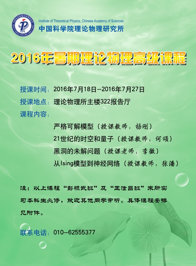 理论物理所2016年暑期理论物理高级课程安排.doc