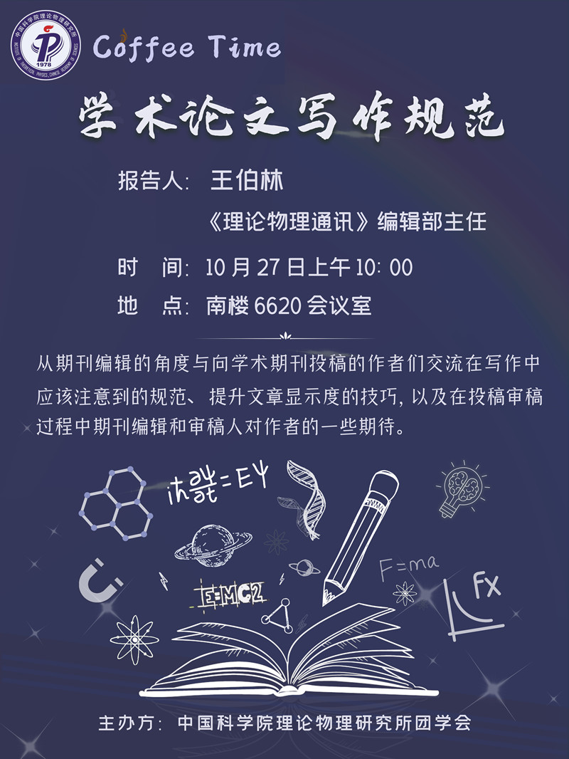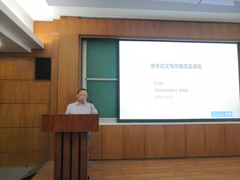 2021年理论物理所夏季研究生座谈会上,同学们希望所里今后可以组织学术论文写作及注意事项方面的讲座。1027日上午,针对同学们的需求,人事教育处邀请《理论物理通讯》编辑部主任王伯林做了题为“学术论文写作规范”的讲座。讲座由人教处副处长郭舒婷主持,部分科研人员和研究生参加。