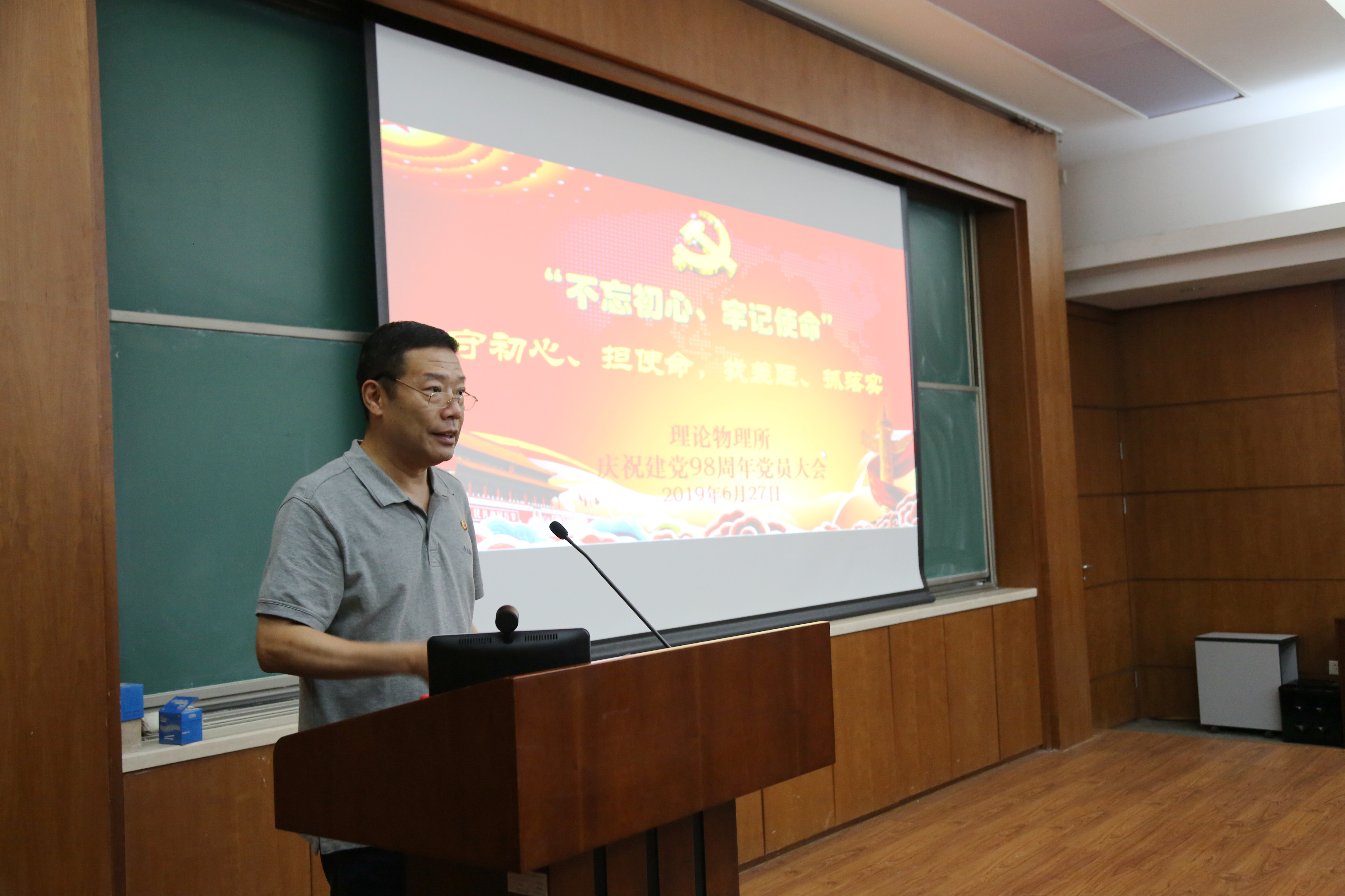 为了纪念建党98周年、扎实开展“不忘初心、牢记使命”主题教育,6月27日上午理论物理所党委召开全所党员大会,通过专题党课报告以及表彰优秀党员、重温入党誓词等方式隆重纪念建党98周年。