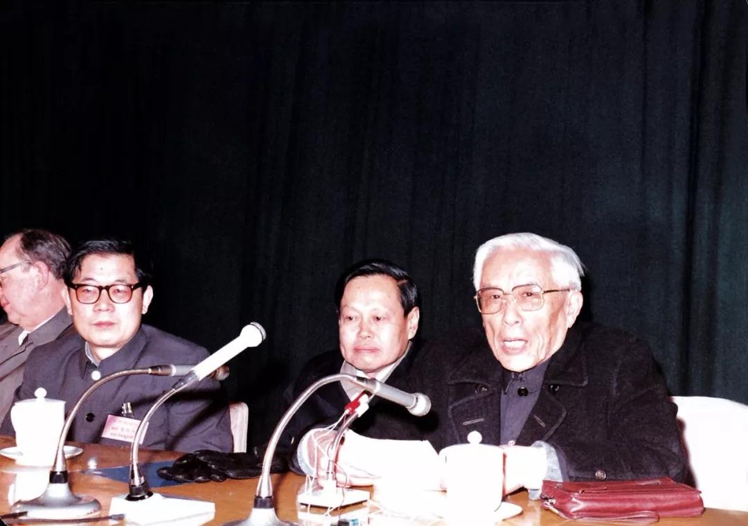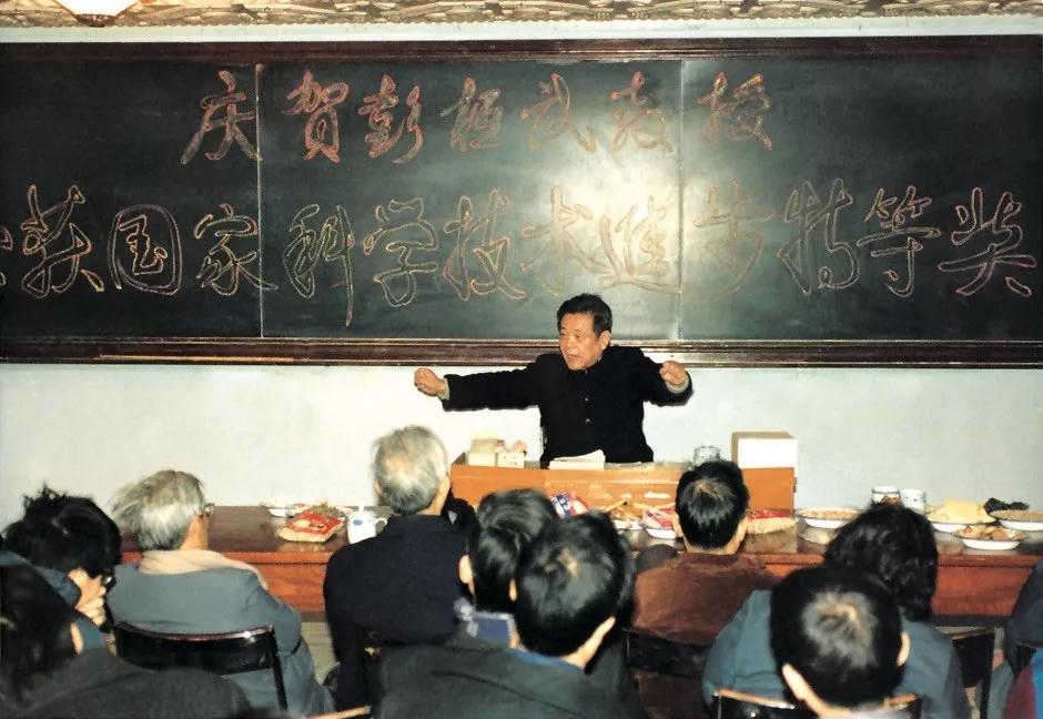 1985年,彭桓武院士在庆贺获得“国家科学技术进步特等奖”会上发言
