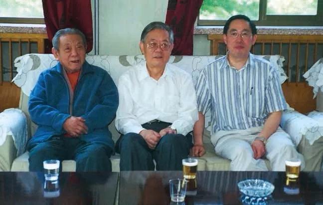 薪火相传,彭桓武院士(左一)、周光召院士(中间)、吴岳良院士(右一)师生三代在一起。