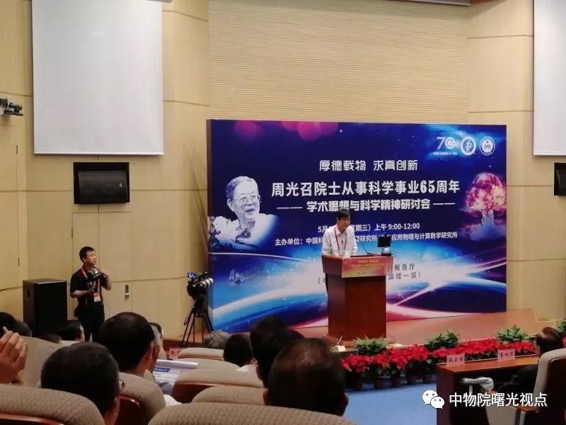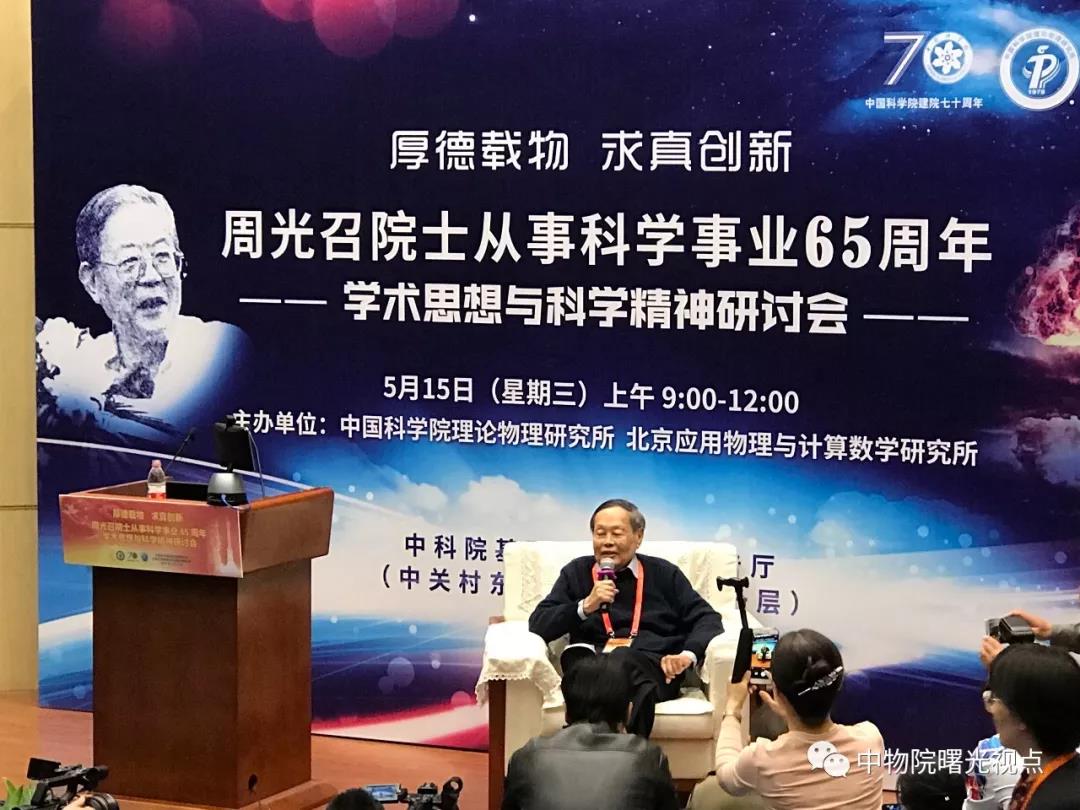 2019年5月15日上午,周光召院士从事科学事业65周年学术思想与科学精神研讨会在中国科学院基础科学园区报告厅召开。会议由中科院理论物理所与北京应用物理与计算数学研究所共同主办。周光召先生的同事、同学、朋友及学生近260人共聚一堂,就周光召先生的学术思想与科学精神进行广泛交流研讨。