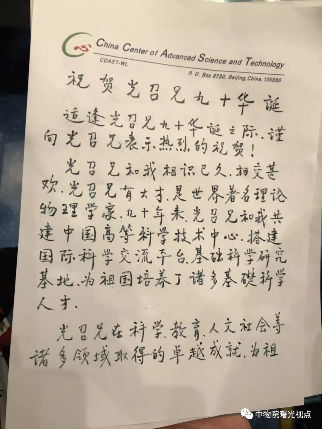 李政道先生贺信