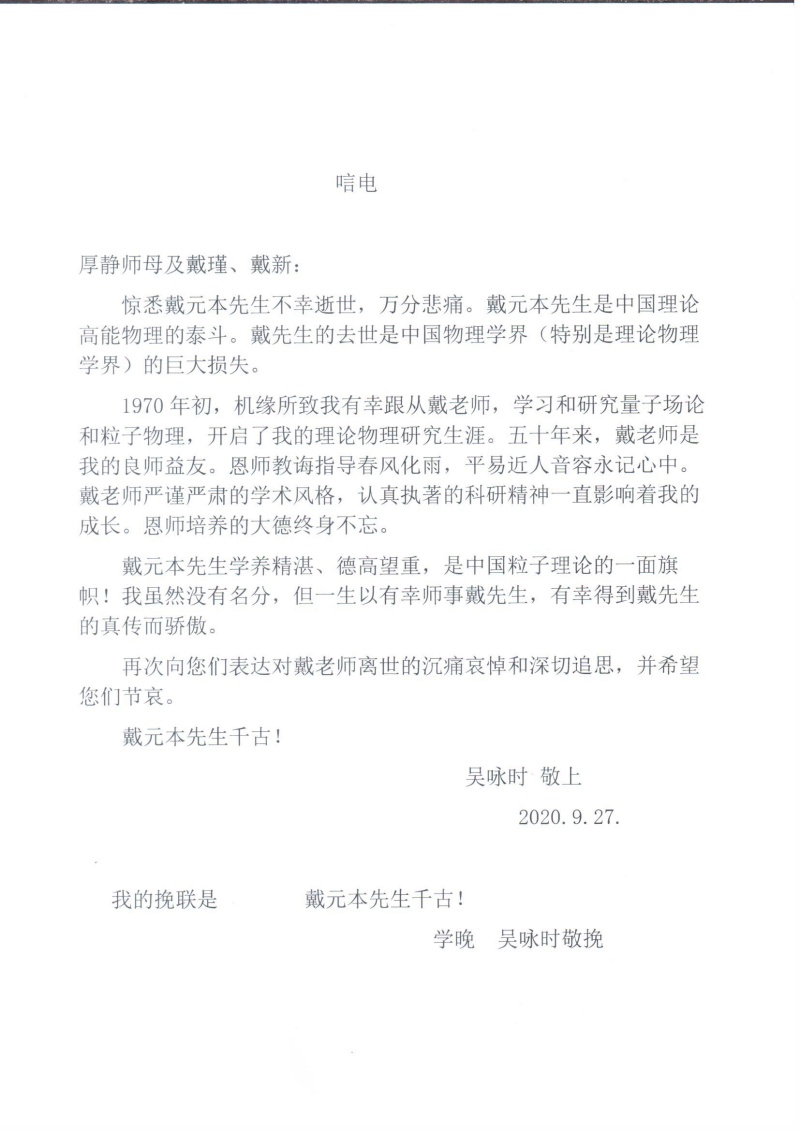 吴咏时唁电