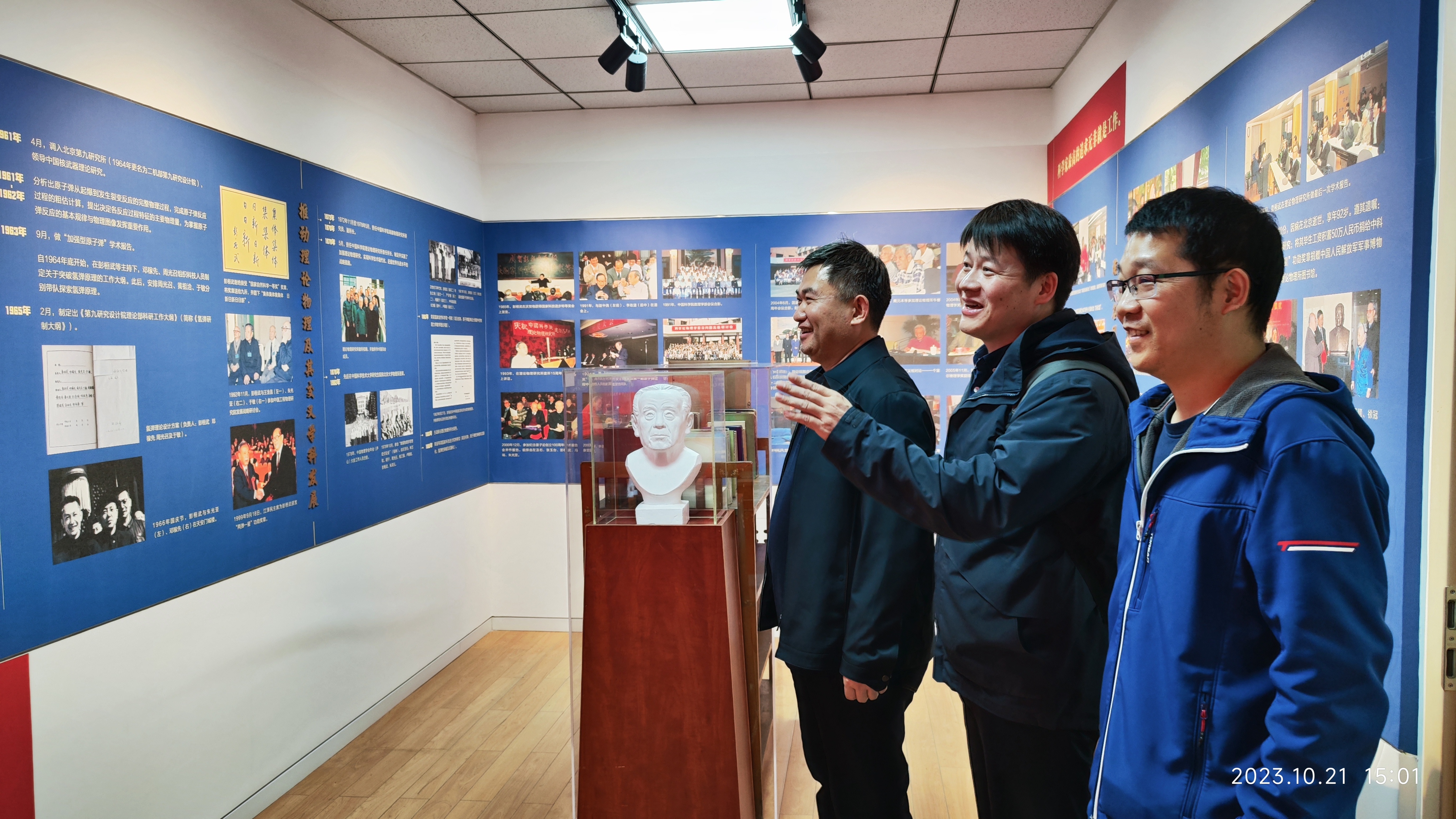 2023年10月21日哈尔滨工业大物理学院副院长王先杰教授、院长助理丁卫强教授和卜严严副教授参观展室